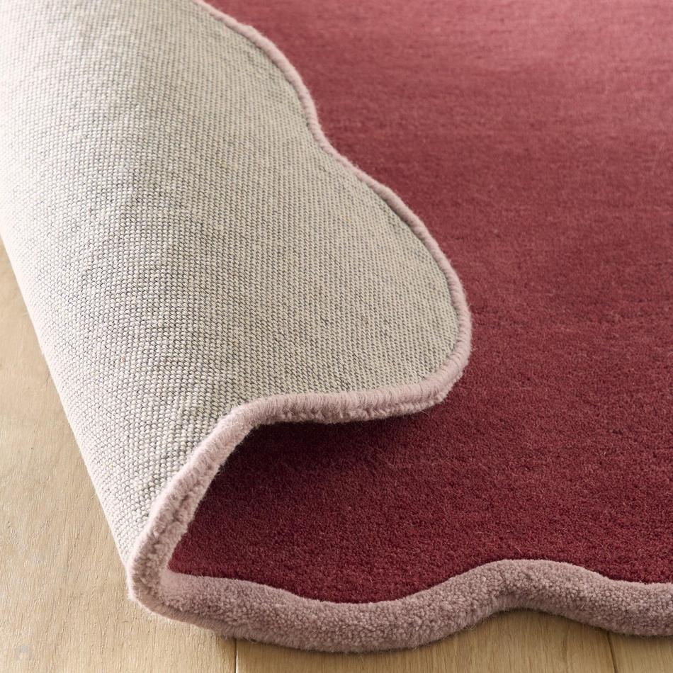 The Scalloped Elsie Coral Pink/Lilac Rug brings warmth and personality to interiors with its playful scalloped border and luxuriously soft wool texture. Handcrafted in India from 100% pure wool, it offers both comfort and durability, making it a charming choice for bedrooms, nurseries, and relaxed living spaces.