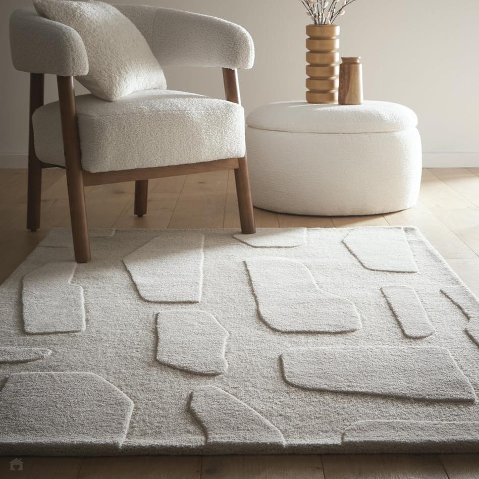 Crafted from 100% premium wool with a cotton backing, this rug is luxurious yet durable, ideal for contemporary, Scandinavian, or natural-inspired interiors. The neutral palette ensures versatility, complementing light and dark furnishings alike, while the sculpted form adds elegance and quiet character to any setting.