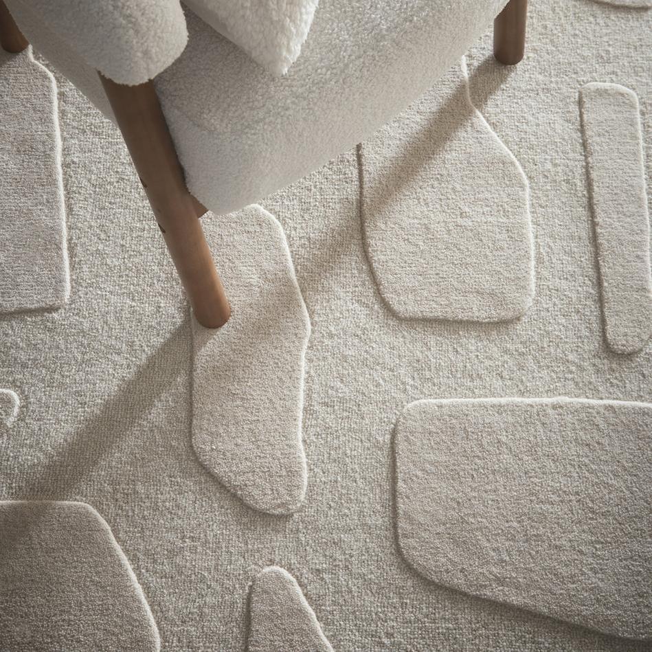 The Sculptured Stone Oatmeal Rug embodies understated luxury through its beautifully tactile, hand-carved texture. Inspired by organic stone formations, the design features softly contoured abstract shapes, each defined by a precise high and low pile structure that adds depth and dimension.