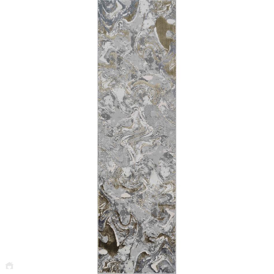 The Emperor 315 Solarius EMP15 Gold Runner brings a luxurious, contemporary statement to the home with its layered marbled design and soft metallic sheen that shifts gently with the light. The abstract pattern features fluid streaks, weathered textures, and stone-like veining, creating a sense of depth and natural movement across the surface. This expressive visual effect is enhanced by a textured hi-low pile, giving the rug a tactile, sculptural dimension that feels both modern and refined. Expertly machine-woven in Turkey from a blend of polypropylene and polyester, the rug offers a super-soft 12 mm pile that feels plush underfoot while remaining durable, non-shedding, and practical for everyday living. The light-reactive fibres allow the rug to appear lighter or darker from different angles, adding an elegant and atmospheric finish to any room. Ideal for living rooms, bedrooms, and open-plan interiors, the Emperor Solarius Rug provides a perfect balance of comfort, style, and bold modern character.