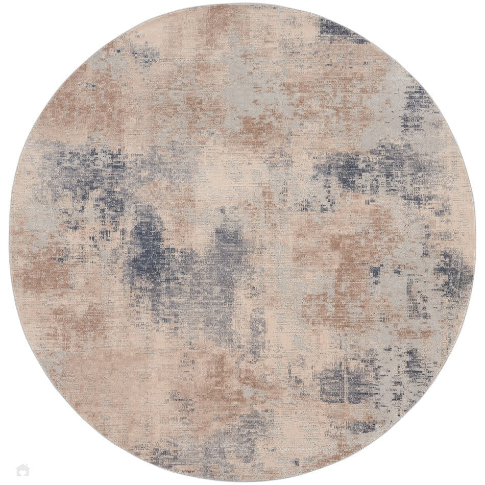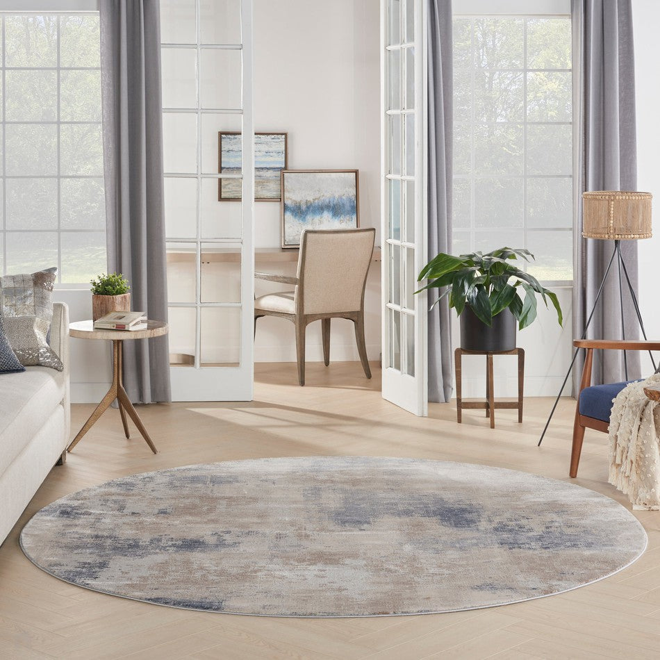 Rustic Textures RUS02 Modern Abstract Distressed Shimmer Carved Hi-Low Textured Durable Polyblend Short-Pile Beige/Grey/Ivory Round Rug