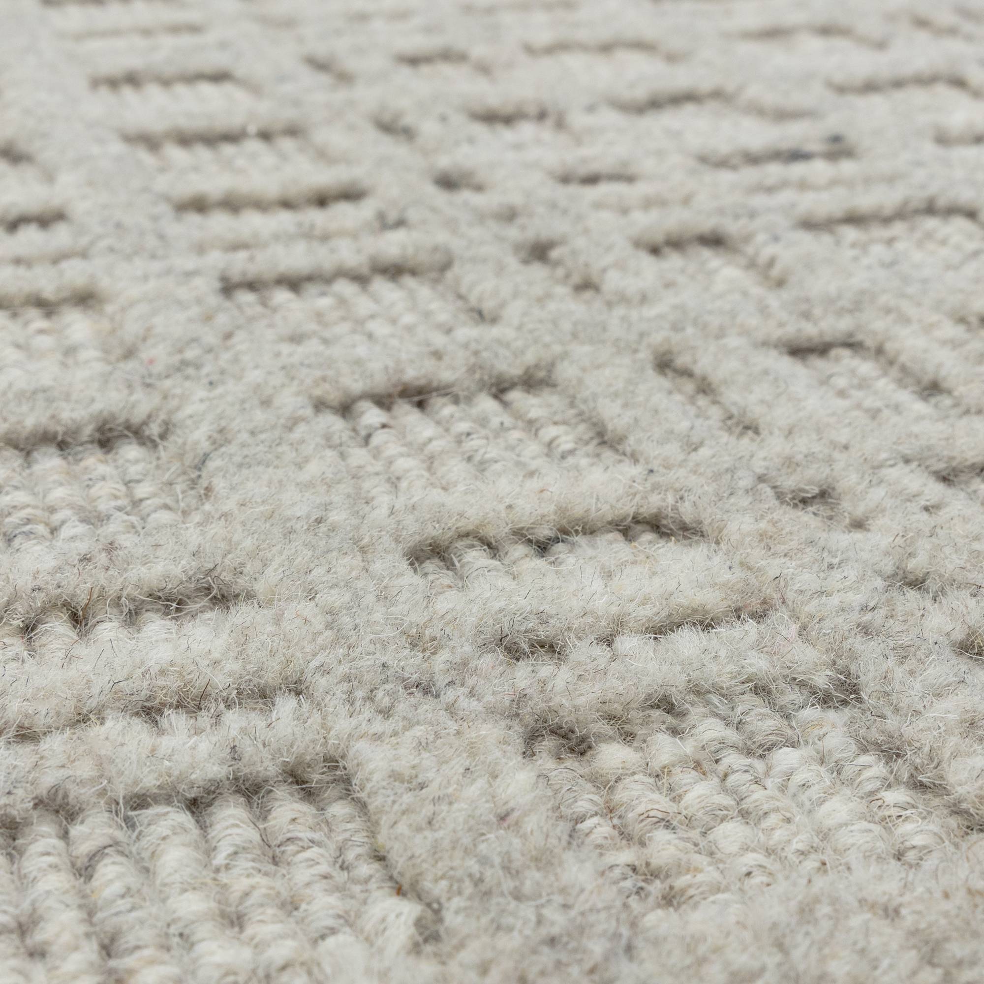 Thatch is hand woven from undyed wool, accentuated with a low loop base and high cut.