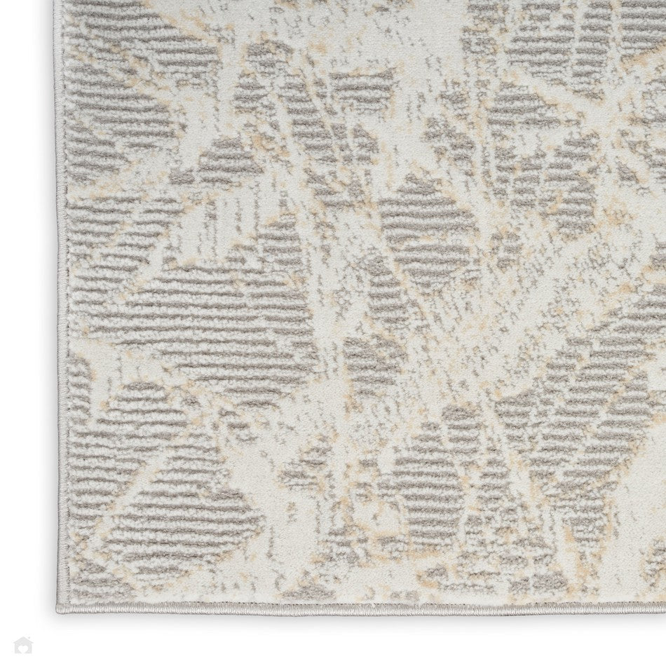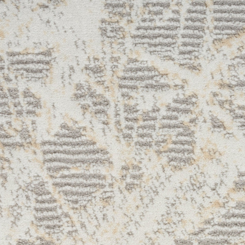 With its 8 mm low-profile height, this rug sits neatly beneath furniture, providing a smooth surface that enhances practicality in high-traffic spaces. The textured hi-low construction creates gentle tonal contrast, highlighting the interplay between soft grey, ivory, and beige shades for a calm, balanced visual effect.