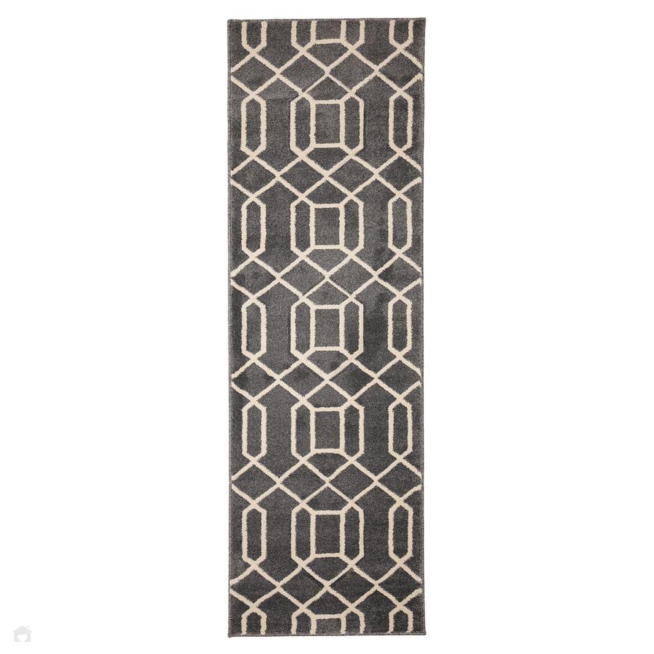 The Newport Lattice Charcoal Grey Runner features a contemporary hand-carved geometric pattern in Charcoal Grey, Soft Grey, and Ivory tones. Its 13mm short pile combines softness and structure, while the machine-woven polypropylene construction ensures easy care and durability. Perfect for living rooms, offices, and modern interiors, this rug delivers a striking balance of simplicity, comfort, and style, elevating any space with its clean architectural appeal.