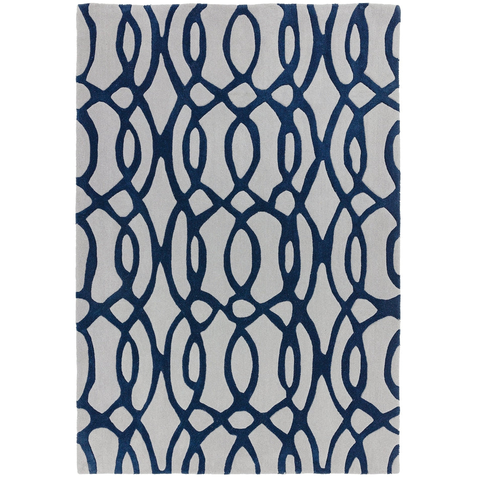 Introducing the Matrix MAX36 Modern Geometric Wire Soft Grey/Navy Blue Rug from the Matrix collection. This contemporary design showcases an intricate twisting wire pattern, rendered in a sophisticated blend of soft grey and deep navy blue. The interplay of light and dark tones creates striking contrast, making this rug a stylish focal point for modern living rooms, bedrooms, or office spaces.