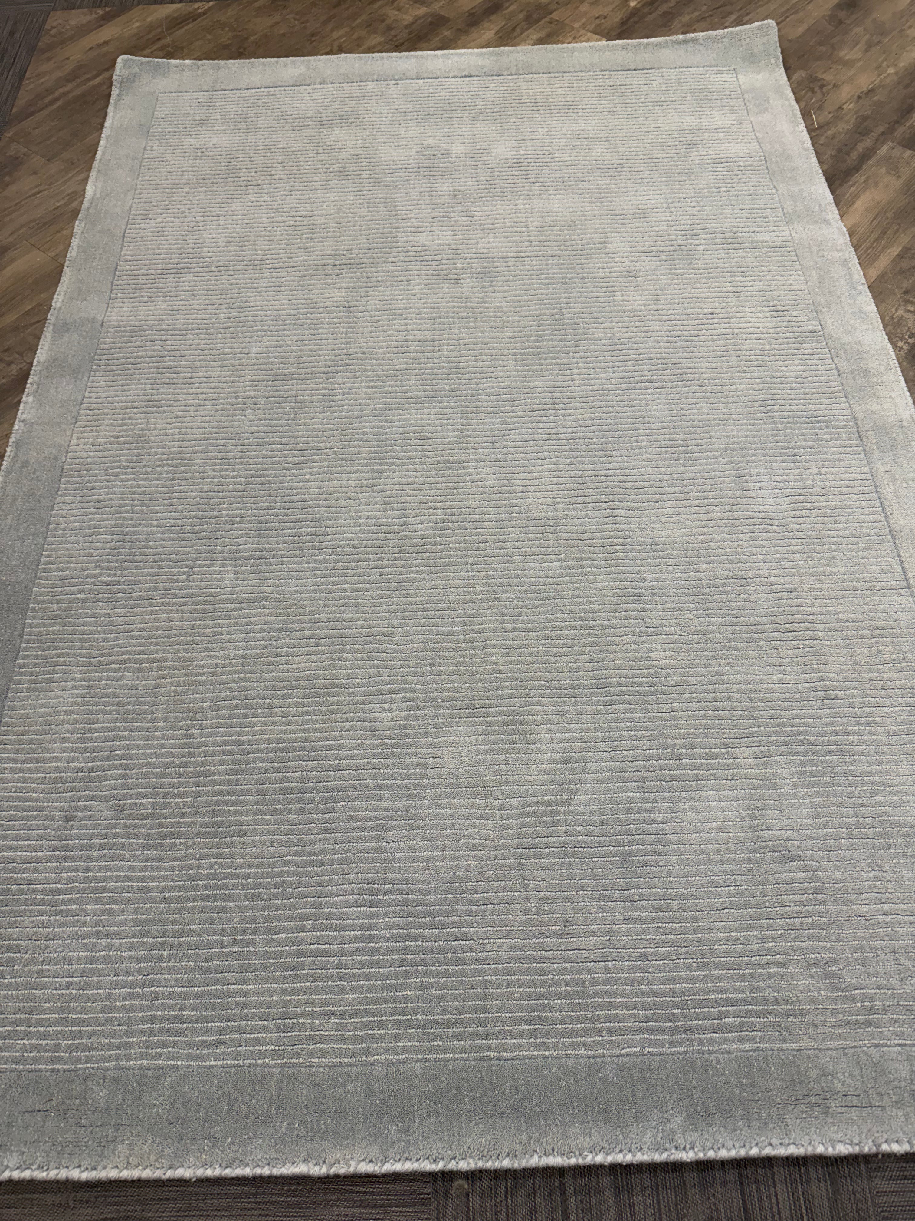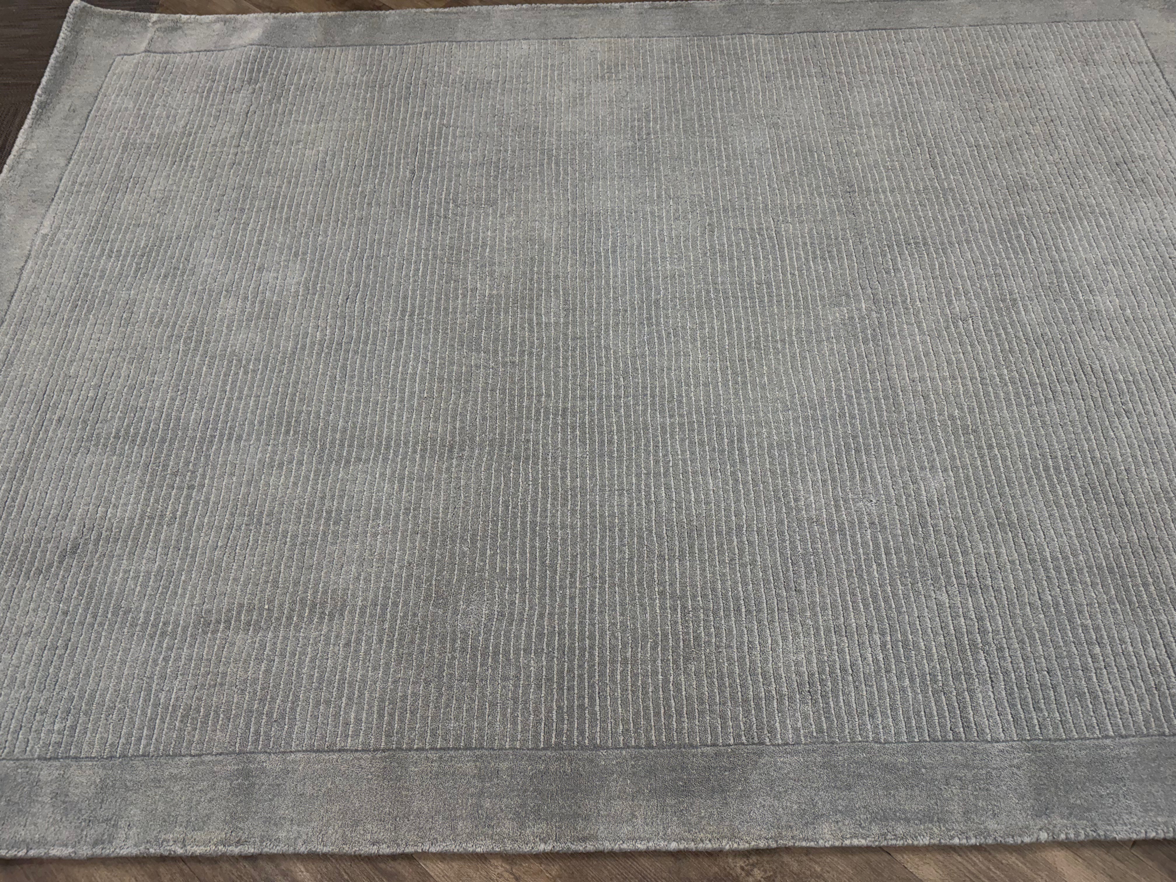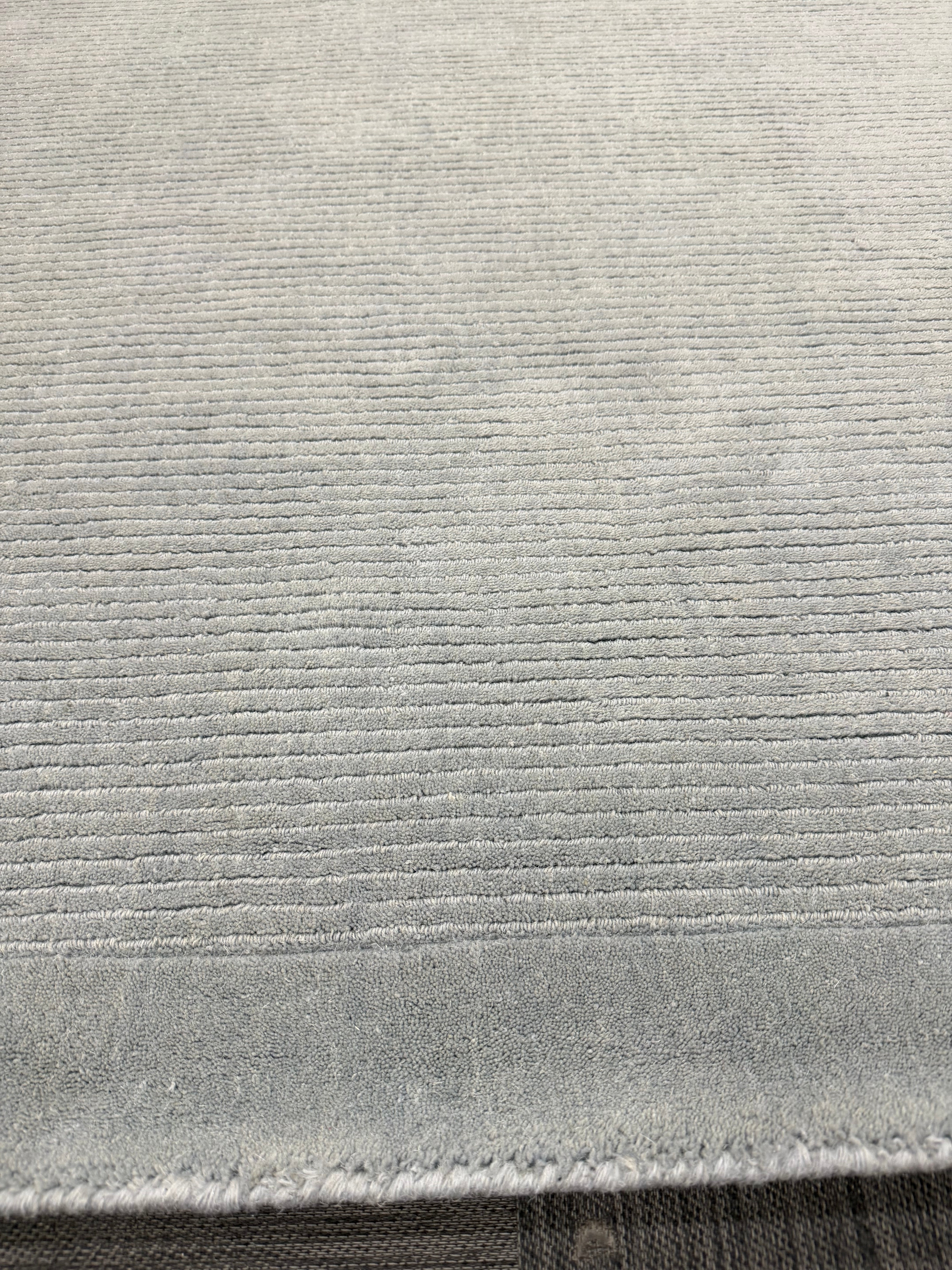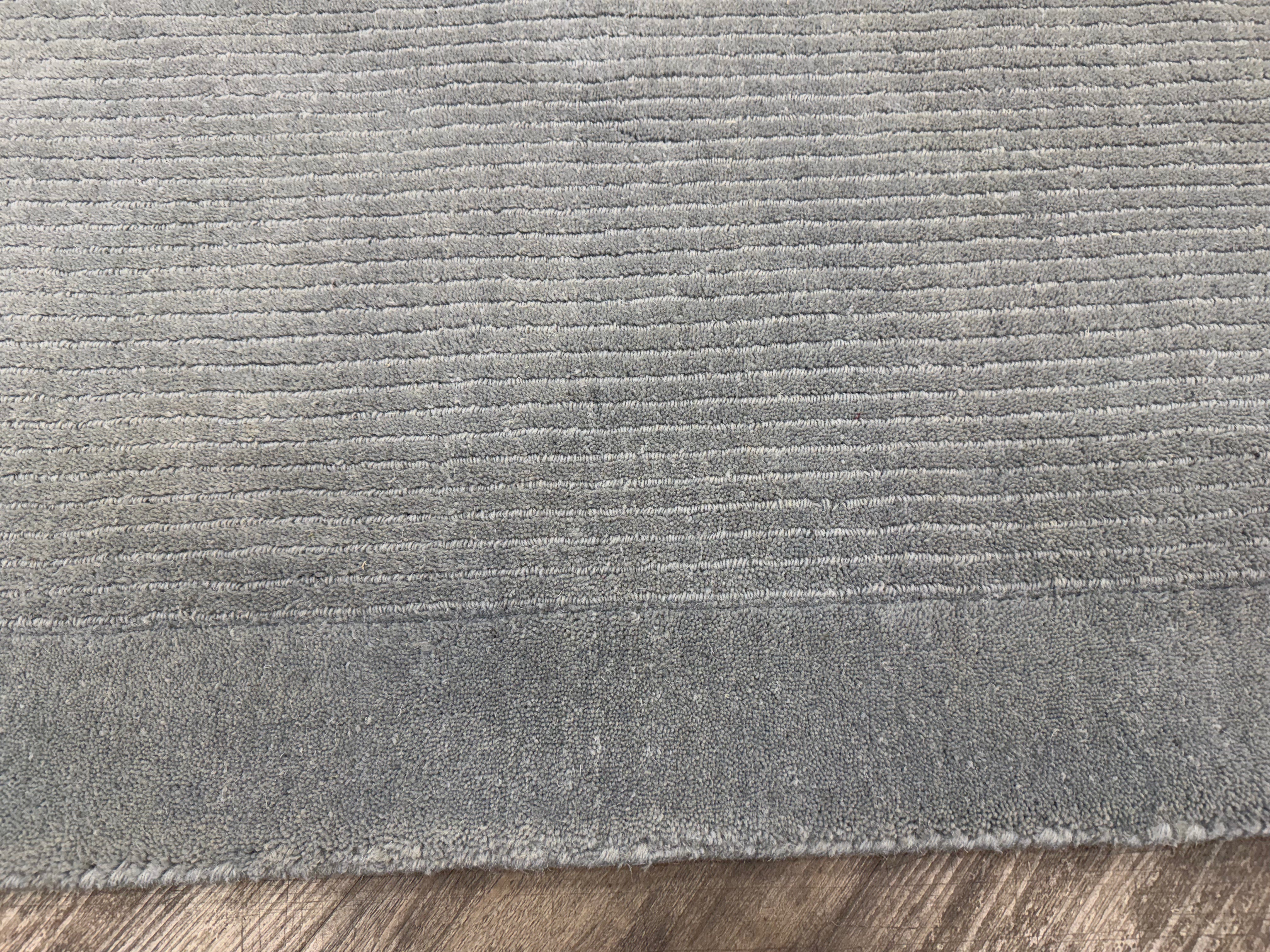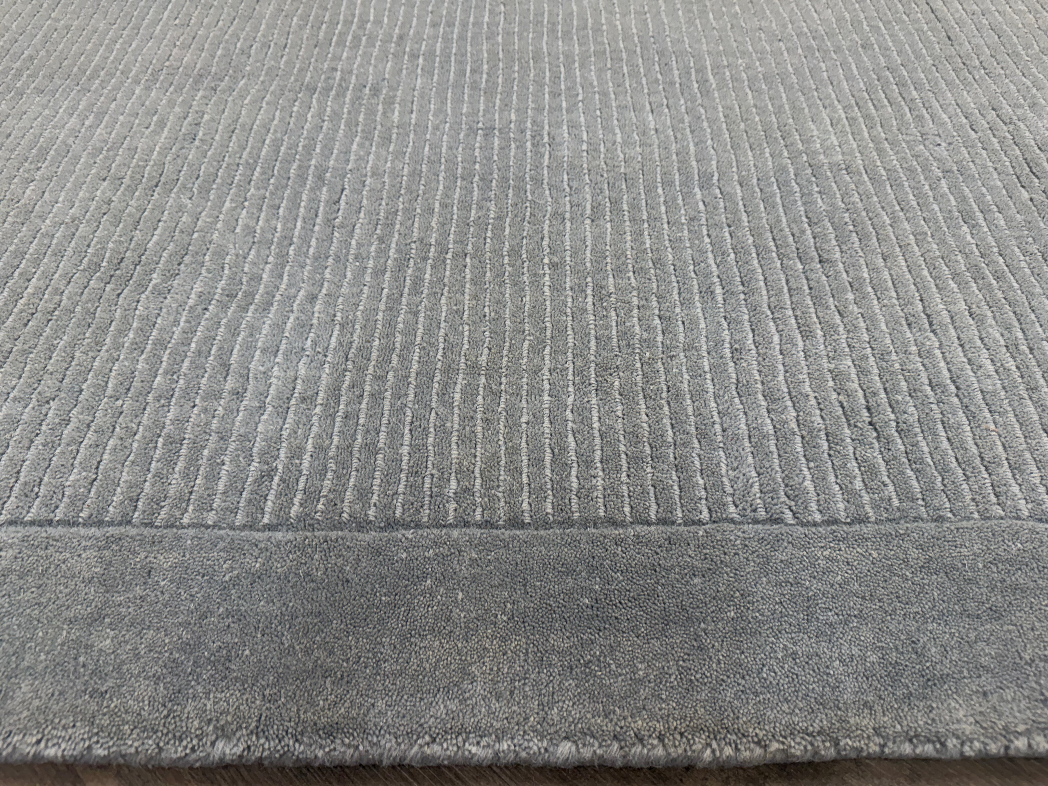 York Modern Plain Textured Subtle Ribbed Stripe Contrast Smooth Border Hand-Woven Wool Duck Egg Runner