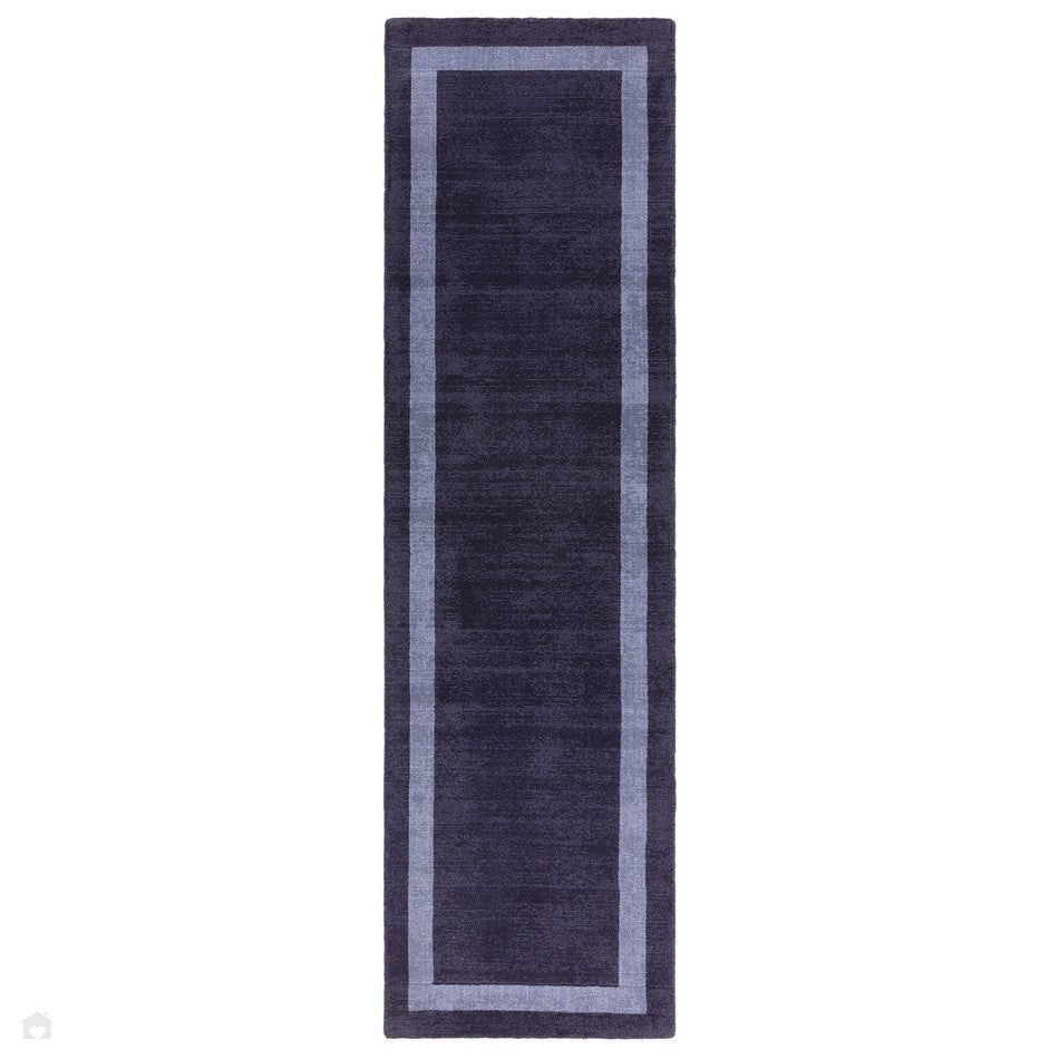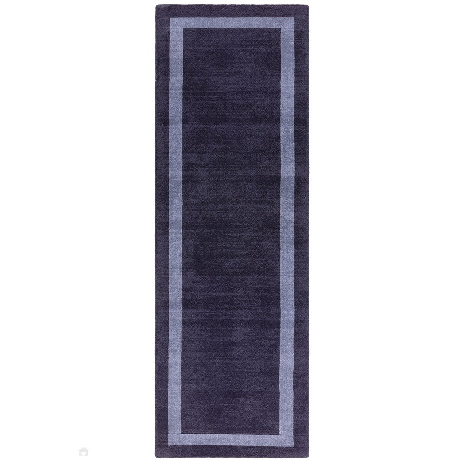 The Albi Modern Plain Border Hand-Woven Textured Wool Low-Profile Tip Sheared Short Pile Navy Runner is the epitome of contemporary refinement, with its clean border detailing and tactile surface. The deep navy base and lighter blue border create a layered tonal effect, balancing boldness with elegance.