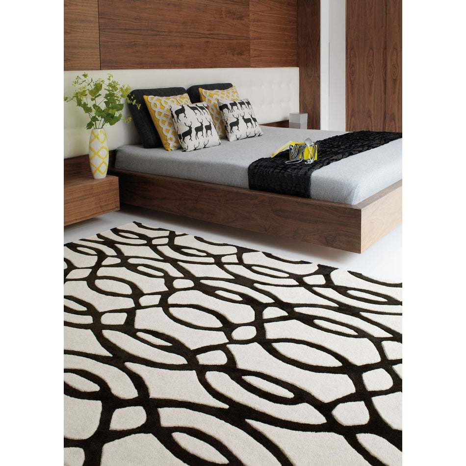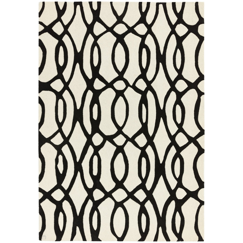 The Matrix MAX35 Wire Modern Geometric White/Black Runner showcases the bold sophistication of monochrome design, where fluid organic lines meet architectural precision. Its intricate black lattice pattern flows dynamically across a crisp white base, creating a visually captivating interplay of movement, contrast, and rhythm. This striking geometric composition embodies modern minimalism with artistic depth, making it an exceptional focal point for contemporary interiors. The clean contrast between black and white enhances spatial balance, while the sculptural linework introduces a refined sense of structure and fluidity. Expertly hand-woven in India from a luxurious 80% wool and 20% viscose blend, the rug offers the perfect fusion of natural softness, durability, and light-reactive sheen. The dense 11mm pile (approx. 2.5kg/m²) provides a plush, cushioned feel underfoot, while subtle viscose highlights bring the dark pattern to life under changing light conditions.
