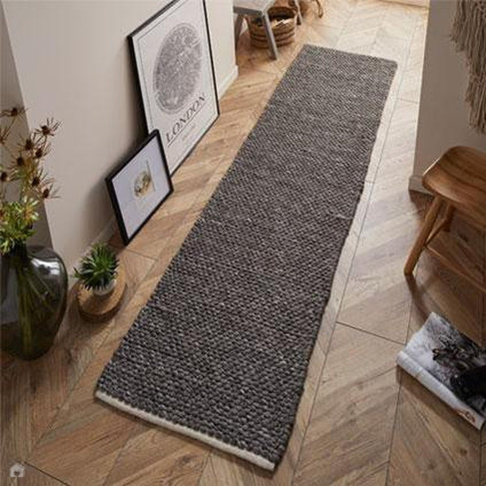 The Savannah Modern Plain Charcoal Runner brings rich depth and texture to your space, hand-woven in India from 100% wool using chunky felted yarns. Its bold Charcoal Grey base is elevated by subtle blends of Ash Grey, Stone Grey, and delicate touches of Ivory, creating a visually interesting pebble-like surface. The 1.1 cm flatweave pile and heavyweight 2.7 kg/m² construction offer warmth, softness, and a naturally insulating feel underfoot, making it perfect for living rooms, dining areas, and bedrooms where a deeper tone is desired. Savannah features a soft, blanket-like construction.