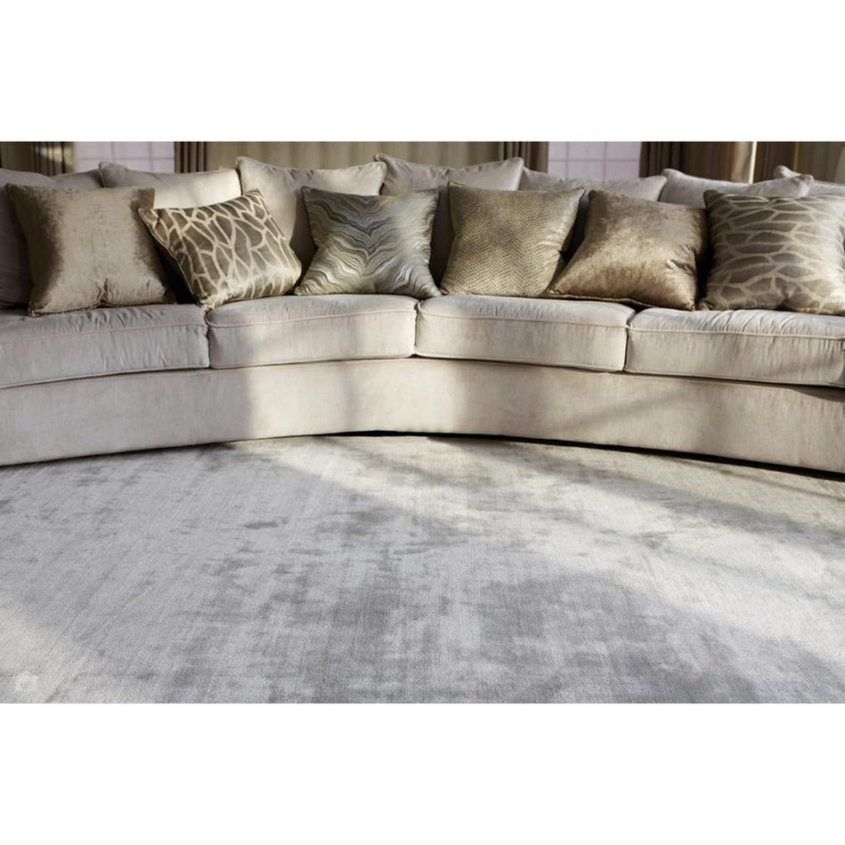 The Katherine Carnaby Chrome Silver Rug embodies understated sophistication with its beautifully balanced tones of Silver Grey, Dove Grey, and Ash, enriched by luminous Frosted Pearl highlights. Hand-woven from 100% viscose, it features a dense, high-density pile that delivers a silky-smooth texture and natural sheen, creating subtle movement underfoot. Perfect for living rooms, bedrooms, or elegant open-plan spaces, this luxurious piece enhances interiors with a sense of calm, modern glamour while maintaining the signature high-end finish synonymous with the Chrome range.