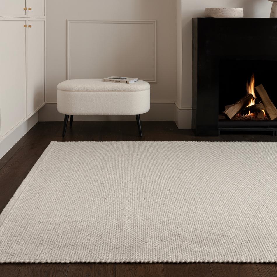 Finley Modern Plain Basketweave Hand-Woven Tonal Textured Durable Wool-Blend Flatweave Loop Pile Ivory Marl Rug