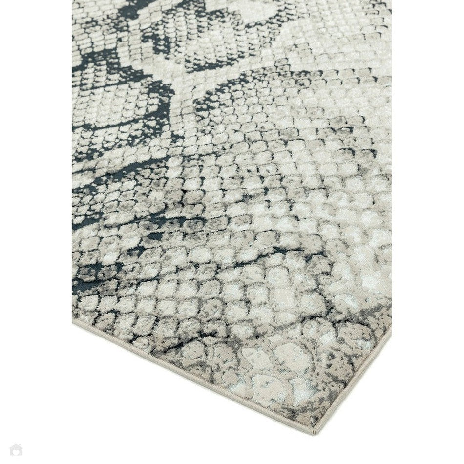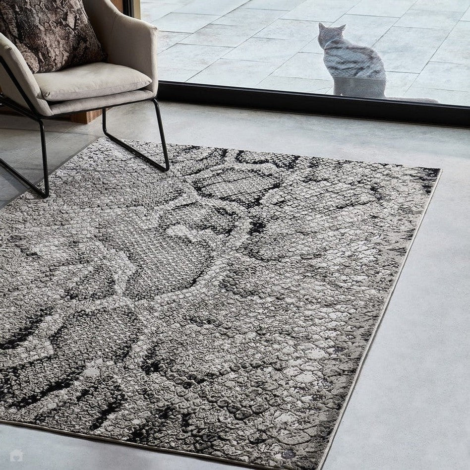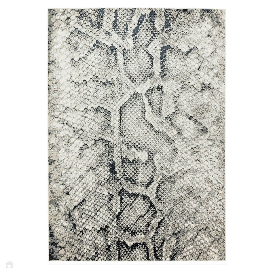 The Quantum QU03 Snake Cream/Grey/Black Rug delivers a modern and luxurious animal-print aesthetic, showcasing a realistic snake-skin pattern with an elegant metallic shimmer effect. The interplay of cream, light grey, dark grey, and black creates a layered tonal balance that enhances the textured design. Woven in Turkey using a durable polyblend and featuring a low-profile 8mm short pile, it combines softness, sheen, and structural precision. Perfect for modern living rooms, bedrooms, or feature areas, this rug offers a bold yet refined interpretation of exotic style, adding instant sophistication to any contemporary space.