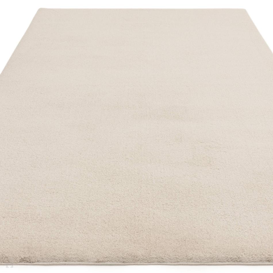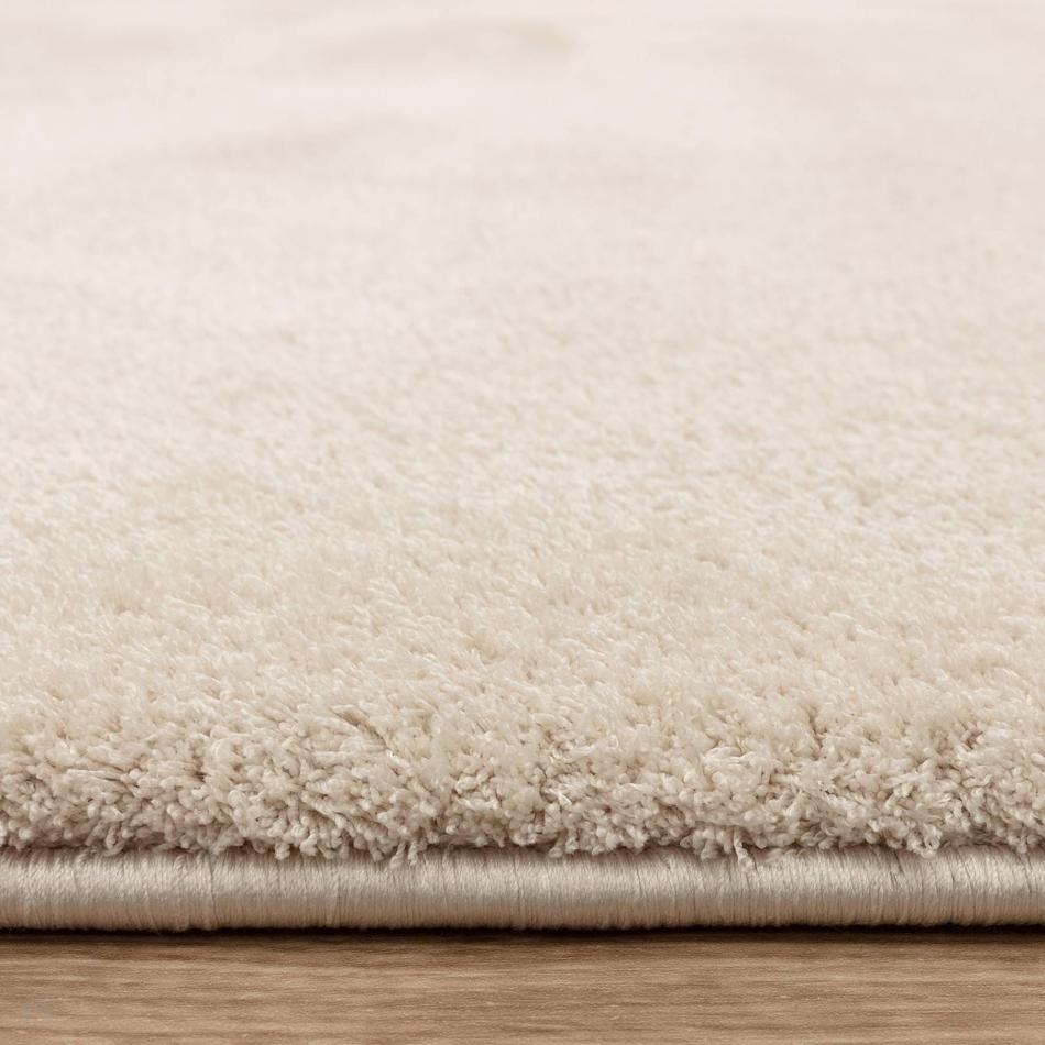 Warm Ivory – A creamy, neutral shade with a delicate blend of Vanilla and Soft Almond undertones, creating an elegant, light-reflective finish. The shimmering microfibre yarn captures soft variations in tone, shifting gently between Pale Cream and Champagne Ivory, giving the plain shaggy surface a radiant and sophisticated depth.