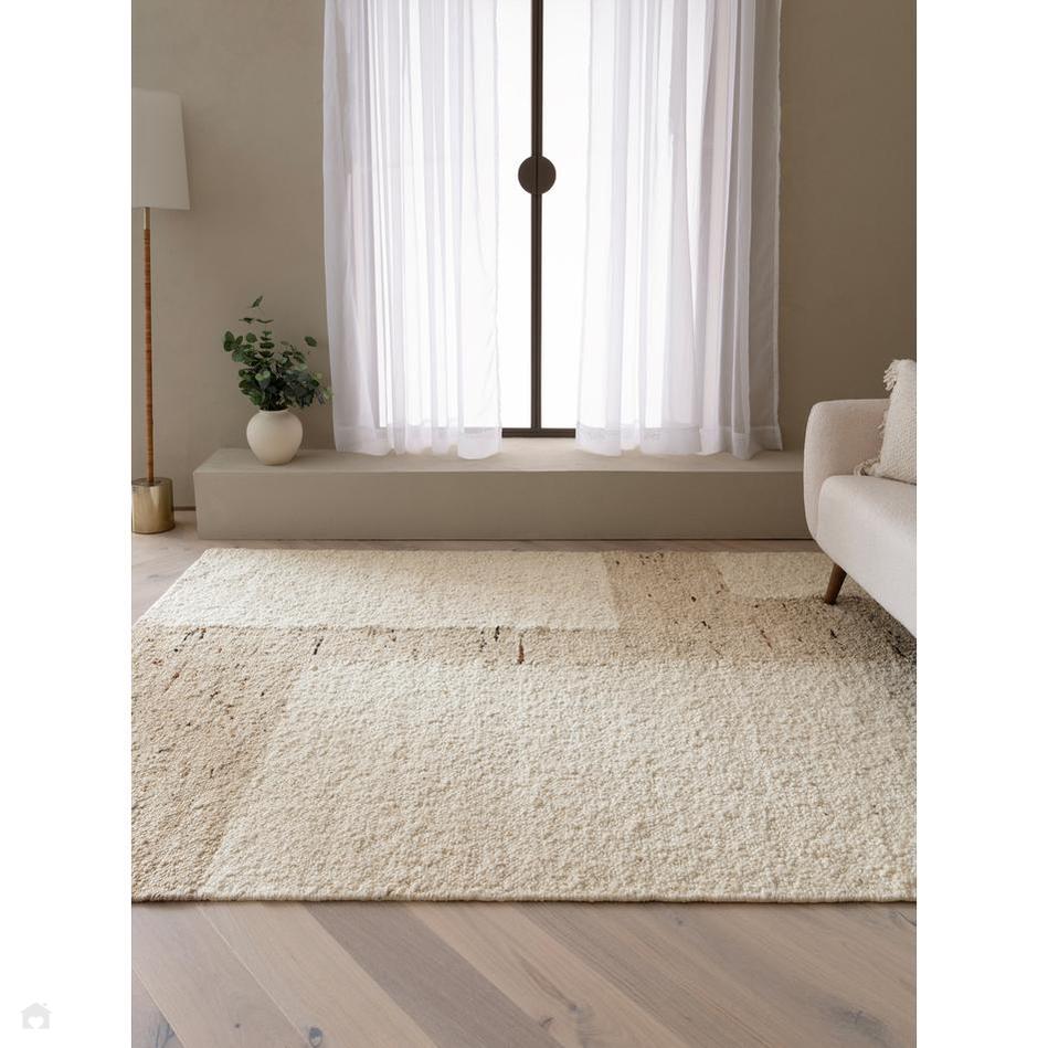 The Napa Tumbla Natural Beige Wool Rug showcases an organic block pattern defined by tonal transitions of Natural Beige, Sandstone, and Light Oatmeal. Hand-woven from hand-spun wool with a looped texture and low 10 mm pile, it balances artisanal irregularity with modern simplicity. Perfect for Scandi, Japandi, and neutral-toned interiors, it delivers warmth, depth, and timeless authenticity — an effortless expression of natural craft and contemporary design.