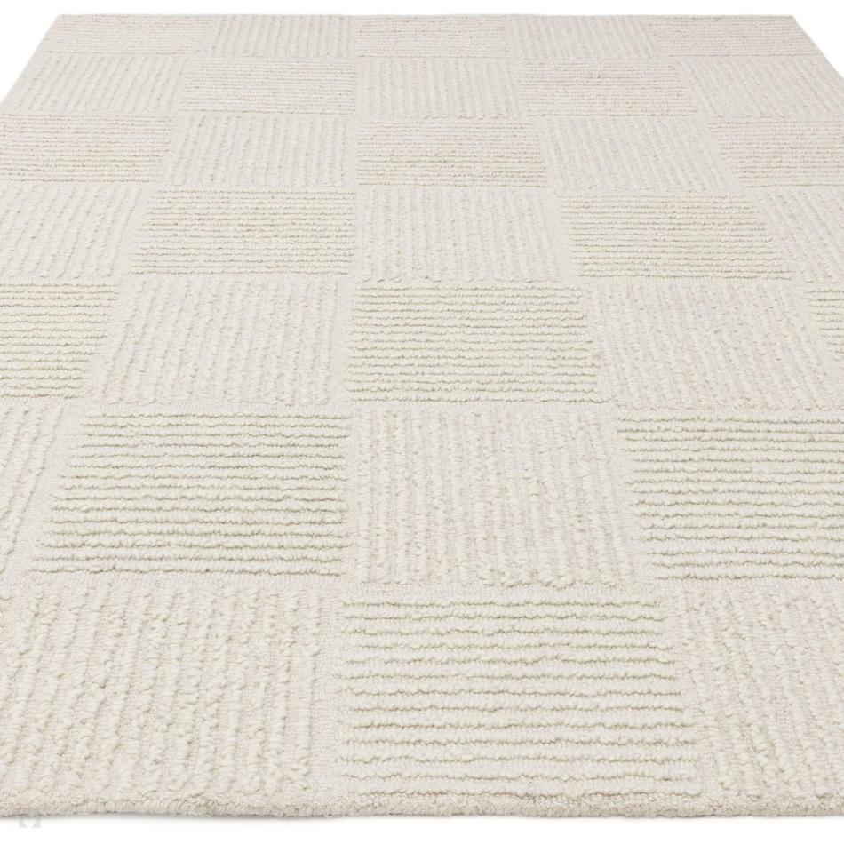 Inspired by Scandinavian minimalism, the Zennith Grid Cream Wool Rug is hand-tufted in India from a premium blend of 97% wool and 3% polyester. Its low-profile loop pile forms a subtle geometric grid pattern, enhanced by a tactile high-low bouclé texture that brings gentle depth without overpowering the space. This rug balances softness with structure, making it a timeless foundation piece for modern interiors.