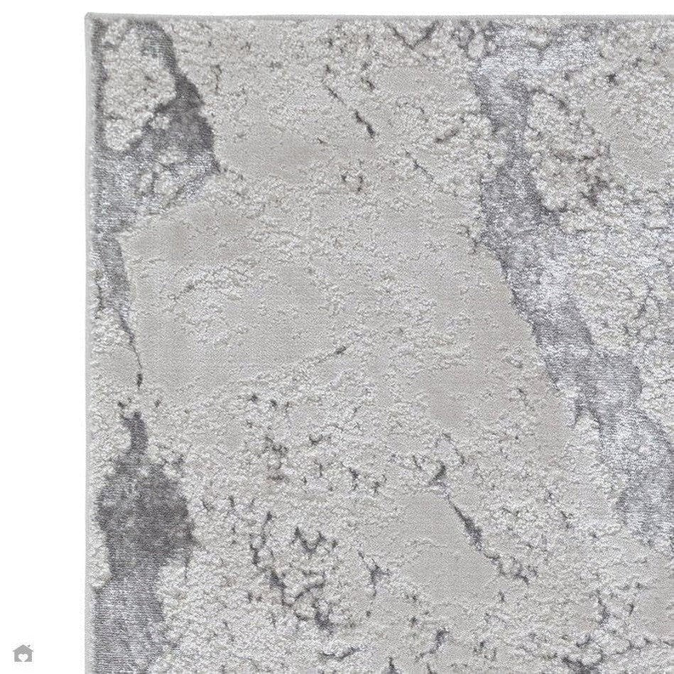 Aurora AU03 Solar Modern Abstract Distressed Marbled Metallic Shimmer Textured High-Density Soft Smooth Low Profile Polyblend Short-Pile Silver/Grey/Charcoal/Beige/Cream Rug