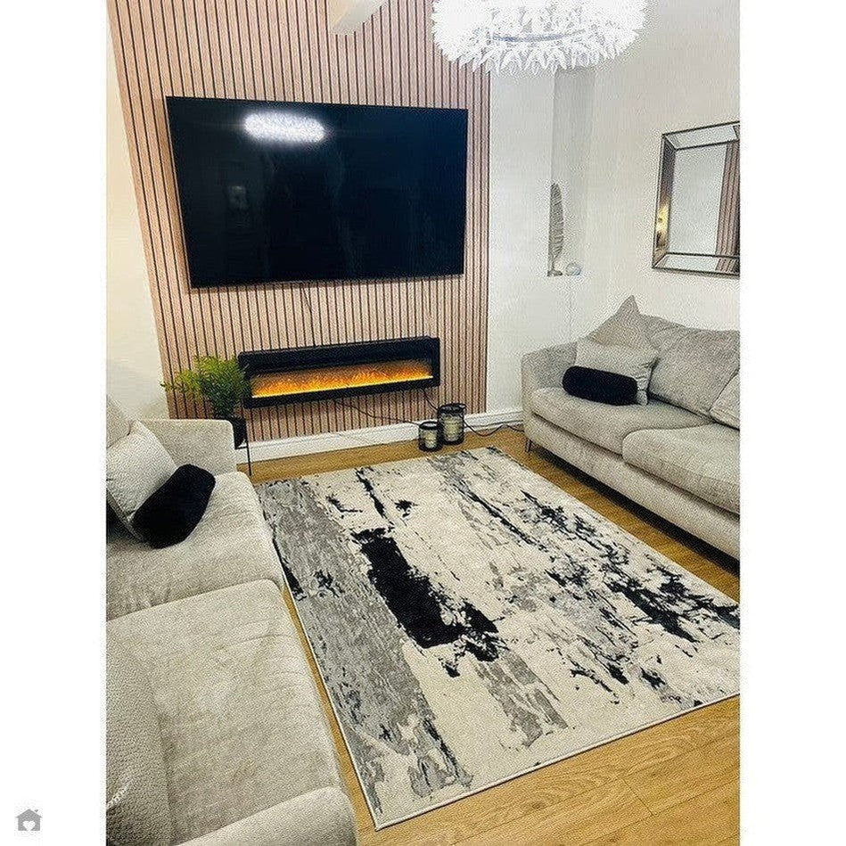 The Aurora AU10 Glacier Rug delivers a bold yet sophisticated aesthetic with its modern abstract marbled design enriched by metallic shimmer accents. A dynamic mix of Silver, Grey, Black, Charcoal, and Cream creates contrast and movement, producing a sleek contemporary look that shifts beautifully with light. With its smooth, low-profile cut pile and shimmering finish, the Glacier Rug offers practicality alongside luxury, making it a perfect addition to living rooms, dining areas, and bedrooms seeking modern refinement.