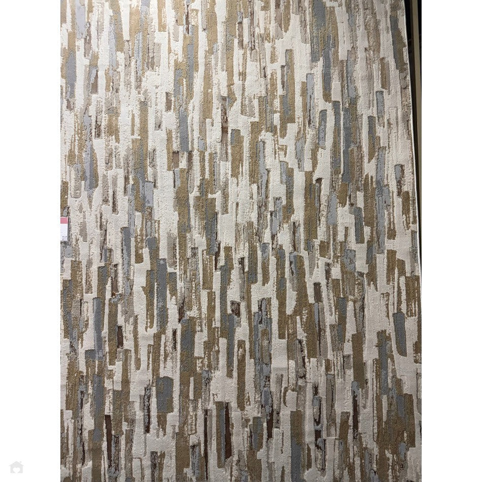 The Aurora AU25 Impression Rug offers a sophisticated linear abstract design that layers subtle brush-like strokes for a textured, contemporary look. A warm yet balanced palette of Grey, Beige, Gold shimmer, and Cream is interwoven with lustrous metallic threads, producing a radiant surface that shifts beautifully under light. With its smooth, low-profile cut pile, this rug combines understated elegance with practical durability, making it an excellent choice for living rooms, bedrooms, and dining spaces seeking a modern yet versatile finish.