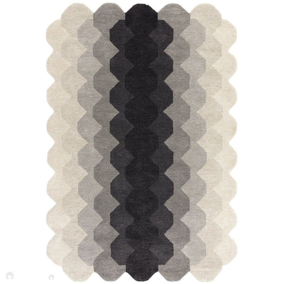 The Hive Charcoal & Grey Rug blends Charcoal Black, Slate Grey, Steel Grey, Silver Grey, Pewter, and Ivory in a striking ombré design that flows seamlessly from dark to light. Hand-tufted in India from 100% pure wool, it offers exceptional softness underfoot with an 8mm low-profile short pile, making it a practical choice for high-traffic areas. The scalloped edges highlight its contemporary style, making this rug ideal for modern living rooms, offices, or minimalist interiors where monochrome elegance takes centre stage. The smooth tonal gradient introduces visual depth, creating a bold yet sophisticated statement piece.
