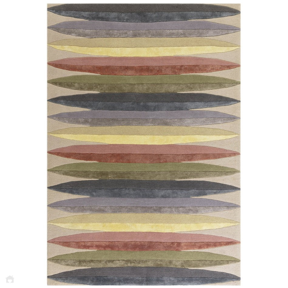 The Matrix MAX84 Pod Rug showcases a distinctive mid-century inspired geometric layout, its elongated pod pattern emphasising clean symmetry and directional movement.