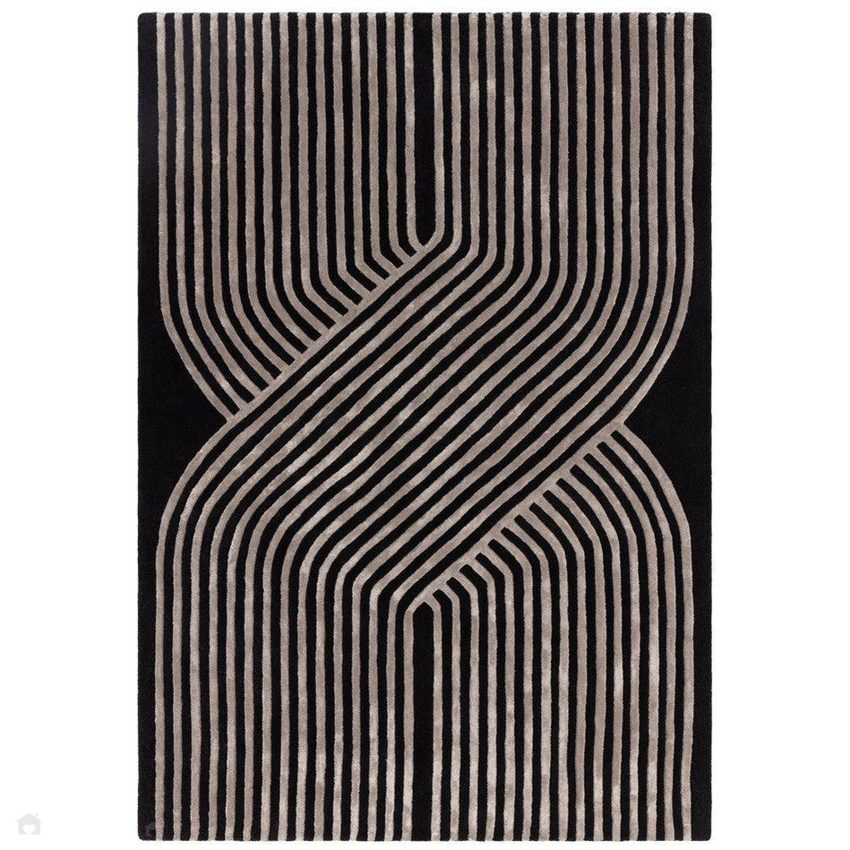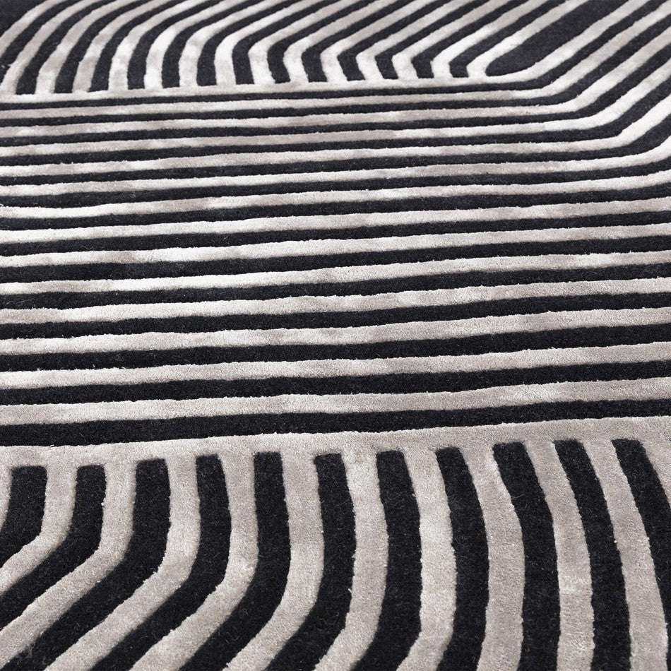 The Matrix MAX98 Solstice Modern Geometric Rug showcases an elegant contrast of Deep Charcoal Grey, Gunmetal Grey, and Soft Graphite, forming a bold yet harmonious linear design that embodies modern minimalism. Crafted from a hand-woven wool-viscose blend, it offers exceptional softness, durability, and a refined shimmering surface that changes beautifully under natural and artificial light.