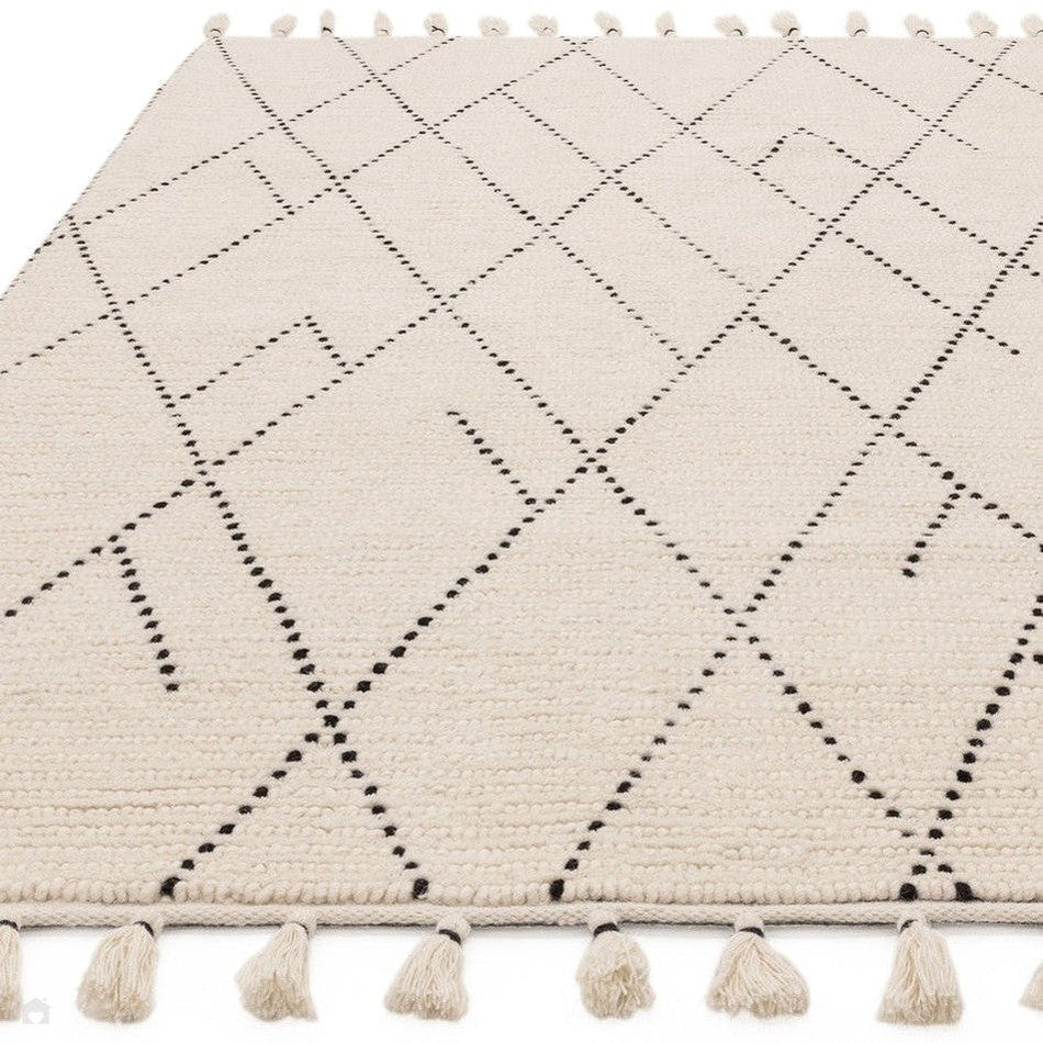 The Nepal Linear Cream/Black Rug blends Cream, Black, Ivory White, and Natural Wool tones in a beautifully balanced hand-woven composition. Crafted in India from pure wool, it features a 10mm flatweave pile with a ribbed texture that enhances its artisanal character. The geometric Berber pattern adds a touch of structured modernity, while the tasselled edges soften the look with a laid-back boho finish.