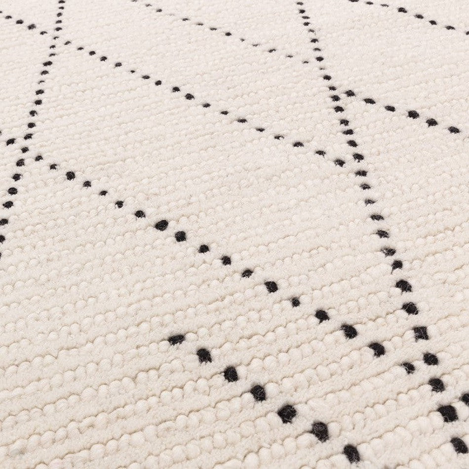 The Nepal Linear Cream/Black Rug combines handcrafted artisan quality with timeless Moroccan-inspired design, offering understated elegance for modern interiors. Hand-woven in India from 100% wool, this rug features a 10mm low flatweave pile with a ribbed, looped texture that creates natural depth and warmth. The black linear Berber pattern contrasts beautifully against the soft cream base, while the tasselled edges complete the look with a relaxed, bohemian charm. Both lightweight and durable, it’s a perfect choice for Scandi, minimalist, or rustic-inspired spaces.