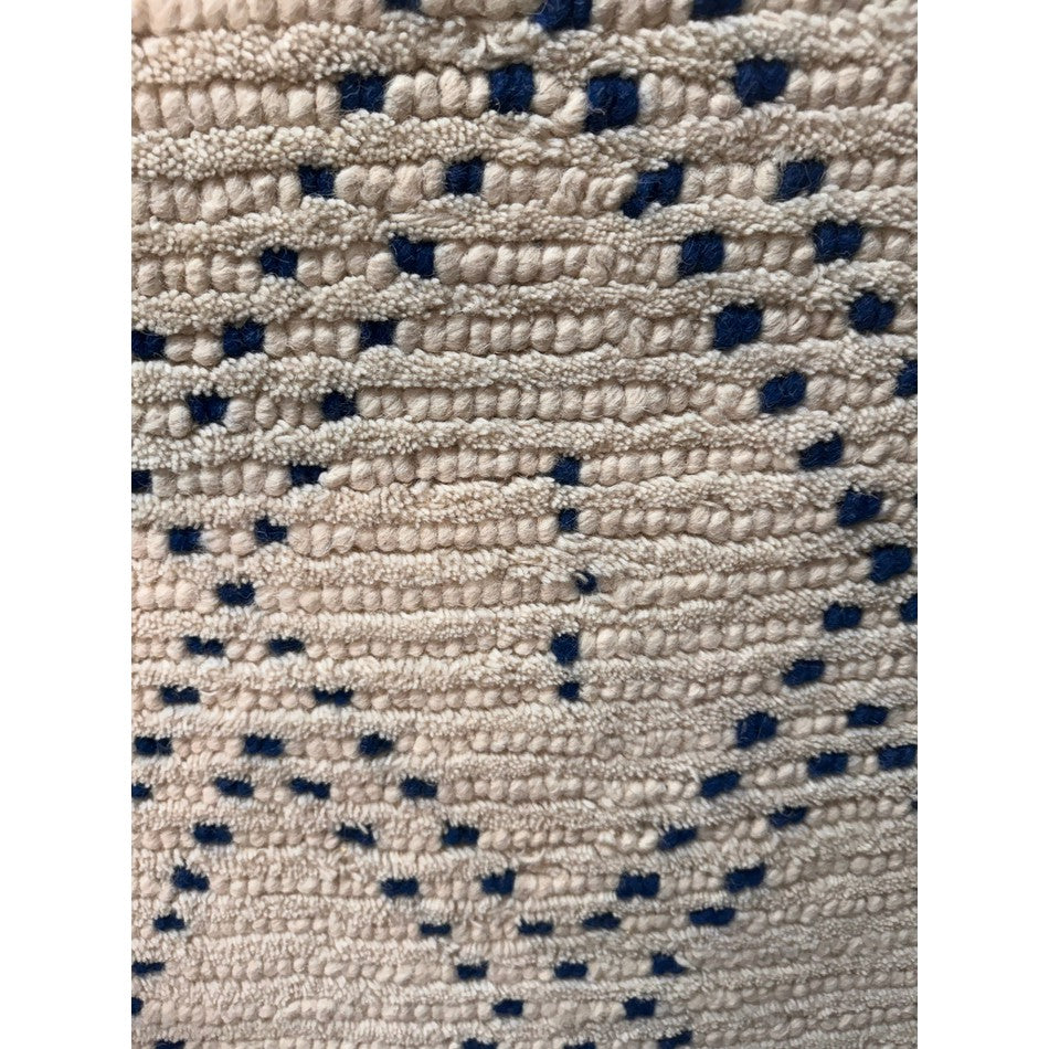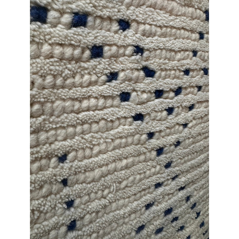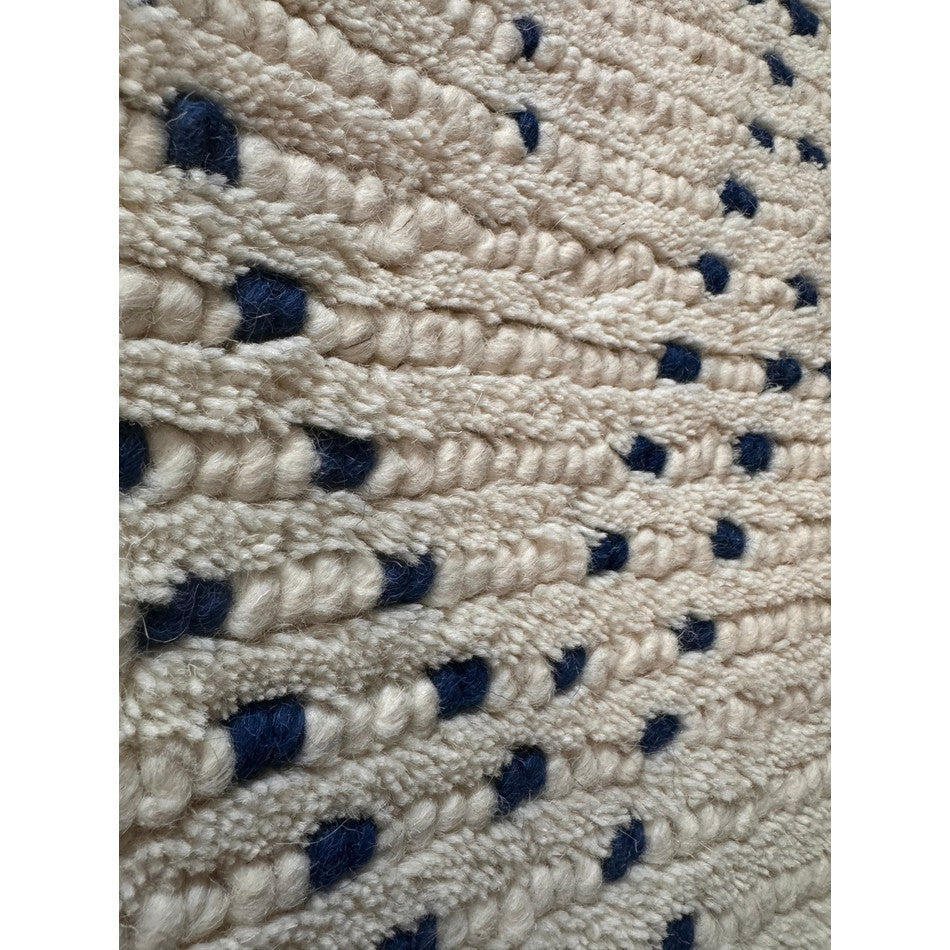 The Nepal Diamond Cream/Blue Rug blends Cream, Deep Blue, Off-White, Beige, and Natural Wool tones in a beautifully hand-woven composition. Its ribbed flatweave texture and geometric Berber pattern create a balanced mix of structure and softness, perfect for adding understated character to modern spaces. Crafted from 100% wool with a 10mm low pile and supported by a cotton/latex backing, this rug offers lasting quality and artisan charm.