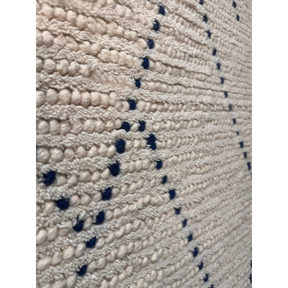The Nepal Linear Cream/Blue Rug combines Warm Cream, Deep Navy Blue, Soft Ivory, Muted Beige, and Heathered Off-White tones to create a soft yet distinctive aesthetic. Its hand-woven wool construction, ribbed texture, and Moroccan-inspired pattern lend tactile warmth and natural character, while the low 10 mm flatweave pile ensures practicality for everyday living.