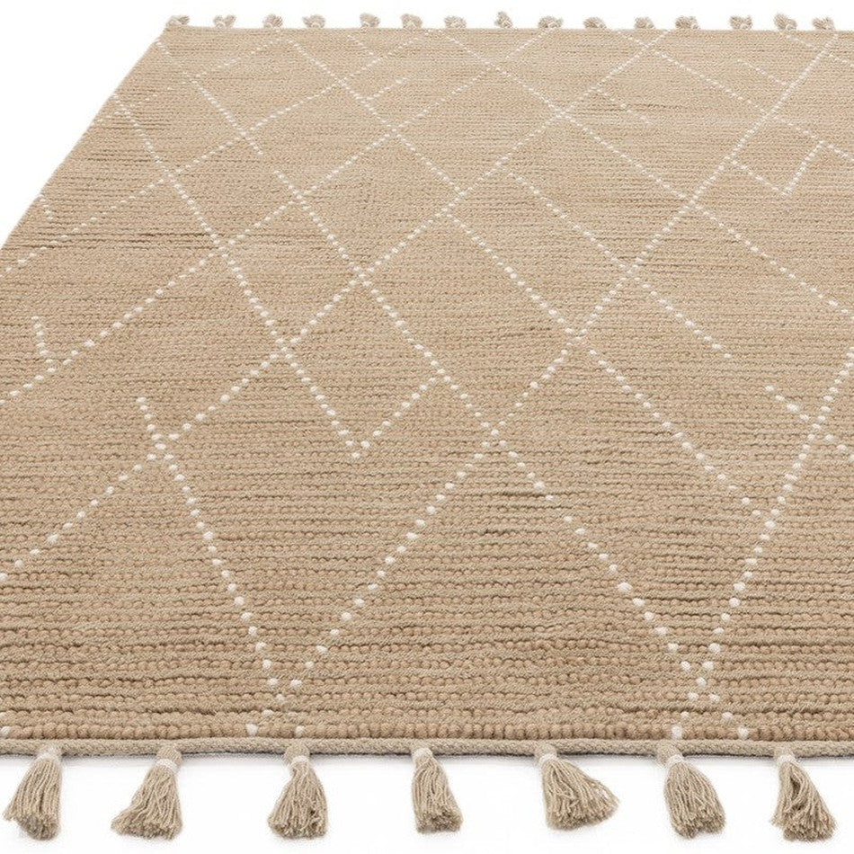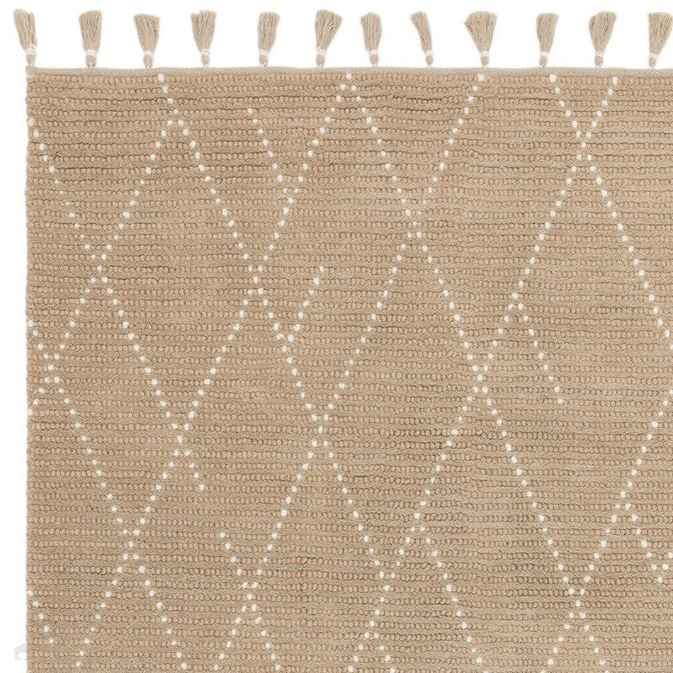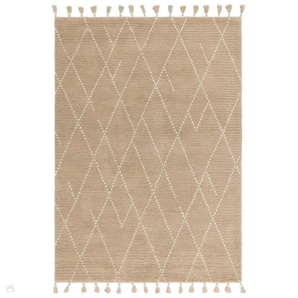 The Nepal Sand/Cream Rug showcases a timeless blend of organic texture and Moroccan-inspired pattern, hand-woven in India from 100% wool with a low 10mm flatweave pile. Its ribbed woven texture and linear Berber design create a calm, earthy aesthetic that complements both Scandi and bohemian interiors. Finished with tasselled edges and a cotton/latex backing, this rug offers a natural softness underfoot while maintaining durability and artisan charm.