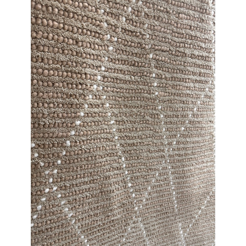 The Nepal Linear Sand/Cream Rug combines Sand Beige, Taupe Brown, Ivory White, Light Cream, and Natural Jute tones in a beautifully balanced, hand-woven wool flatweave construction. The ribbed texture and geometric Berber pattern bring understated movement and warmth, while the 10mm low pile ensures practicality for everyday use.