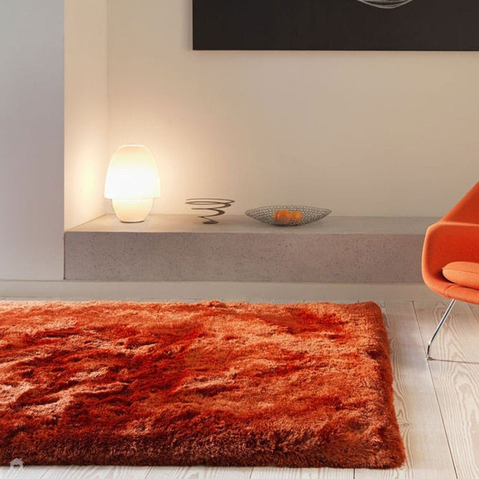 Presented in a lustrous rust-orange hue, this rug brings warmth and vibrancy to your interior, making it ideal for living rooms, bedrooms, and cosy reading corners. The rich, earthy tone injects personality into neutral schemes and pairs beautifully with warm woods, bohemian accents, or modern eclectic spaces. The Plush range is crafted with super-thick, heavyweight yarns enhanced by a metallic shimmer. This gives the rug a luxurious sheen and a tonal effect, where the colour shifts beautifully depending on the lighting and the direction of the pile.