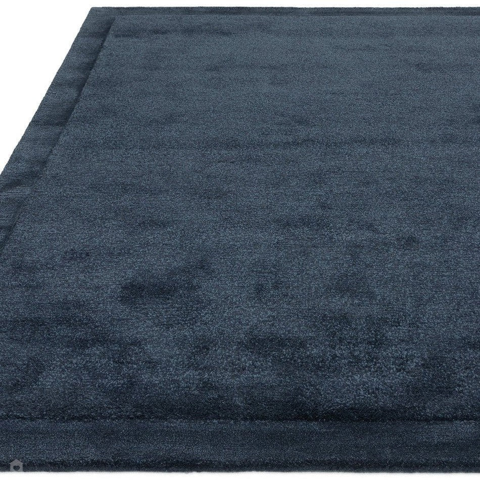 Navy – A deep, sophisticated blue with ink and steel undertones, subtly brightened by silvery-blue reflections from the viscose fibres. The tonal interplay reveals gentle highlights and darker shadowed areas, giving the rug dynamic depth and an elegant, contemporary character.