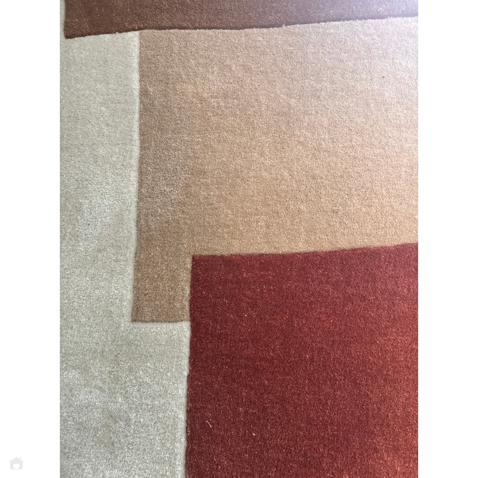 The Romy 13 Papercut Rust Red Rug combines Rust Red, Beige, Taupe, and Ivory in an overlapping rectangular composition inspired by layered paper art. Its asymmetrical, abstract pattern introduces visual depth and creative rhythm while maintaining a warm, natural aesthetic. Hand-tufted with 100% recycled PET fibres, this rug offers a sustainable, eco-conscious choice with a soft wool-like touch, 10mm pile height, and lasting durability. A perfect choice for those seeking to add artistic charm and earthy warmth to modern living spaces, rustic dining rooms, or creative bedrooms, it delivers both comfort and individuality.