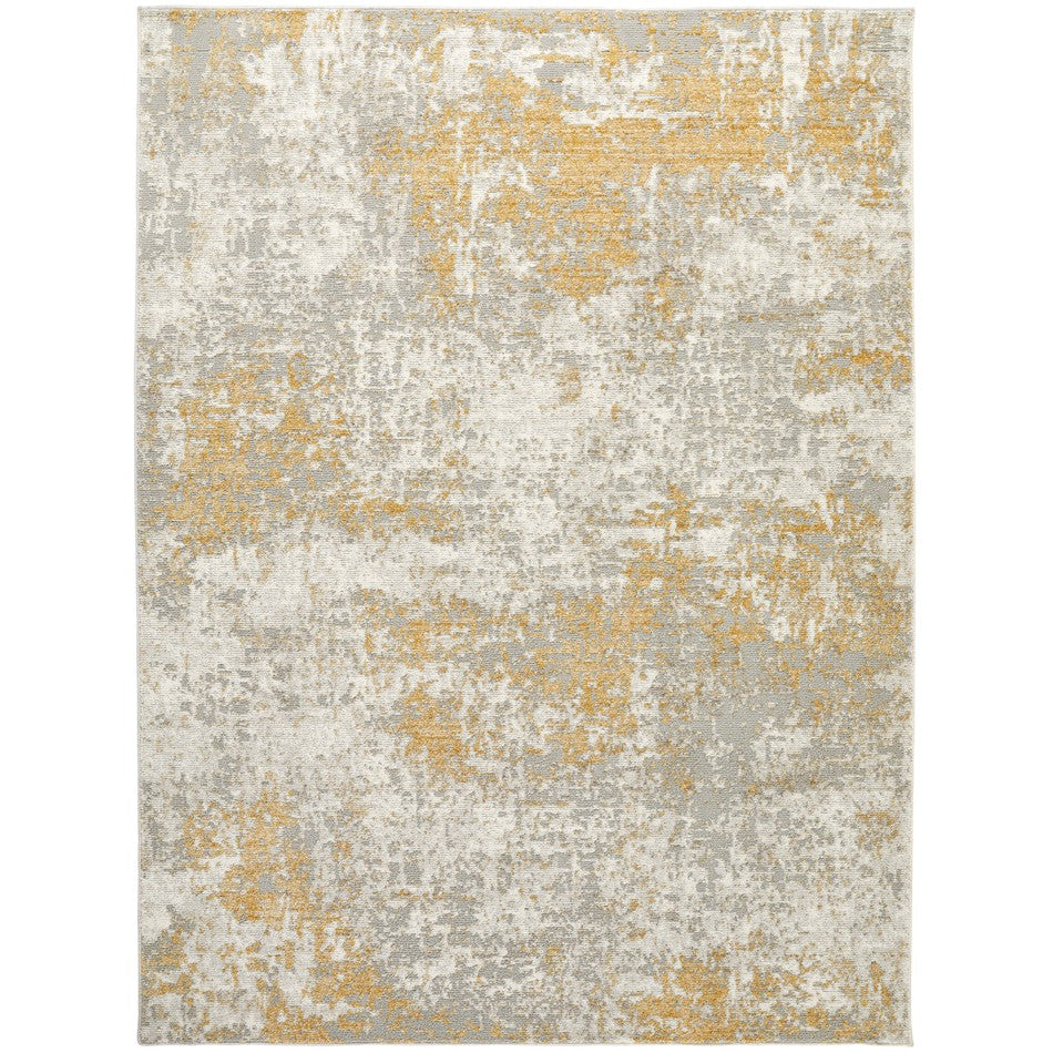 Rossa ROS03 Modern Abstract Distressed Low-Profile Flatweave Rug in Ivory & Gold. Add a touch of modern elegance to your home with the Rossa ROS03 Ivory/Gold Rug, a versatile piece that combines contemporary abstract styling with a distressed, textured finish. Its low-profile 7 mm short pile flatweave features a subtle ribbed effect, making it practical, easy to maintain, and perfect for high-traffic areas or under furniture where a slimmer rug is preferred.