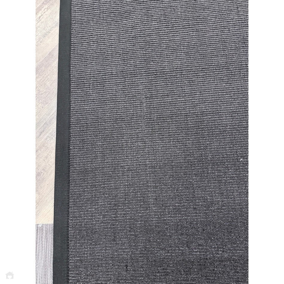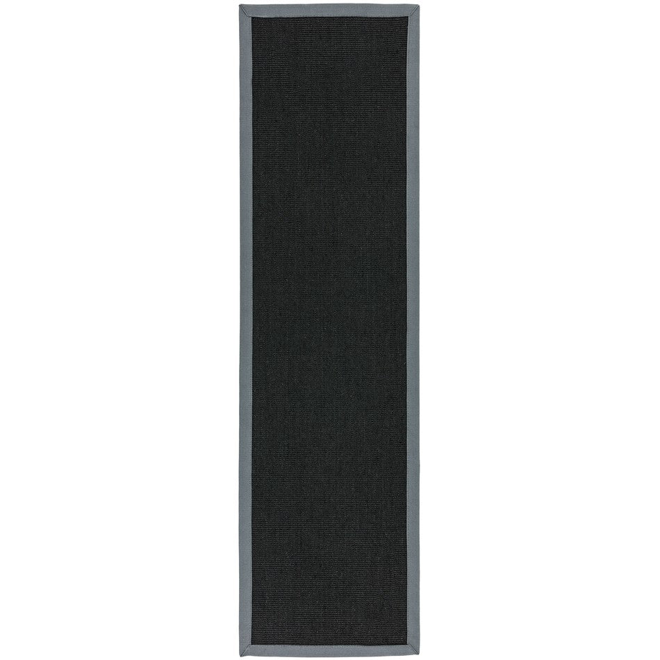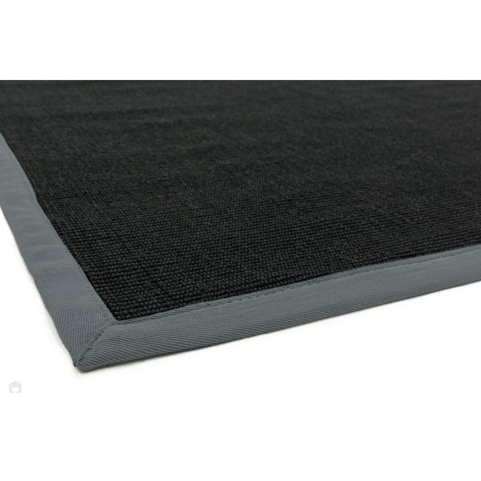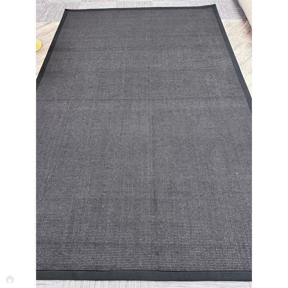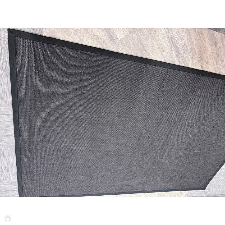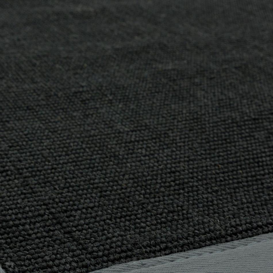 The Sisal Plain Border Black/SteelGrey Rug from the Sisal collection combines earthy natural texture with a refined contemporary edge. Expertly crafted from 100% natural sisal fibres, it features a ribbed flatweave design with a distinctive handwoven look and tactile texture that highlights the beauty of raw plant fibres. The surface has a firm, slightly coarse feel typical of sisal, making it durable, resilient, and ideal for high-traffic areas. Finished with a cotton border for definition and an anti-slip backing for added stability, this rug is both practical and stylish—perfect for hallways, kitchens, and modern living spaces.