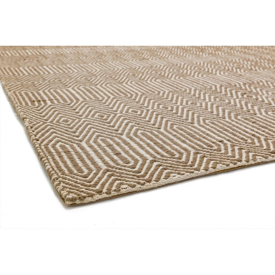Its surface showcases a precise geometric diamond pattern, formed through contrasting woven sections of taupe and white fibres. This creates a subtle duo-tone optical effect with natural texture and movement. The flatweave texture makes it highly durable and ideal for busy areas such as living rooms, dining spaces, and hallways, while remaining soft underfoot. Sloan draws inspiration from traditional hand-woven textiles, featuring rhythmic geometric motifs that echo ethnic and tribal design heritage redefined in modern geometric simplicity through clean lines and balanced symmetry for minimalist, Scandinavian, or urban interiors. Sloan brings effortless sophistication to contemporary living spaces.