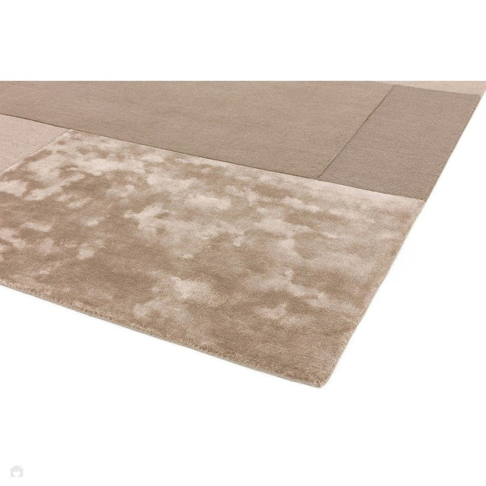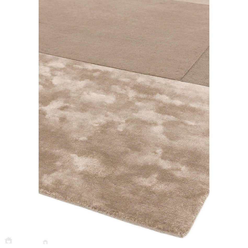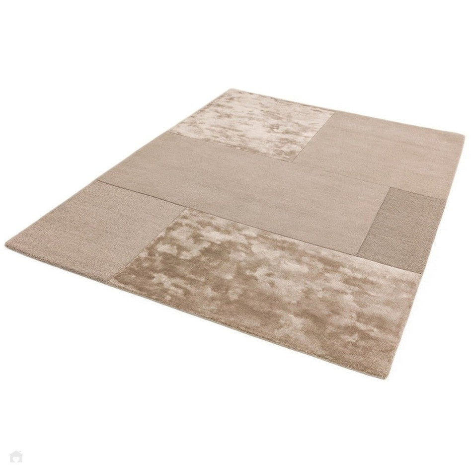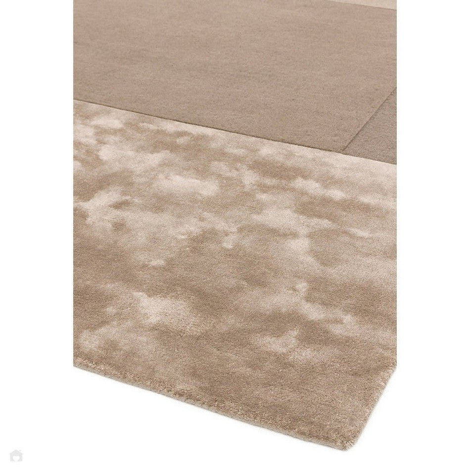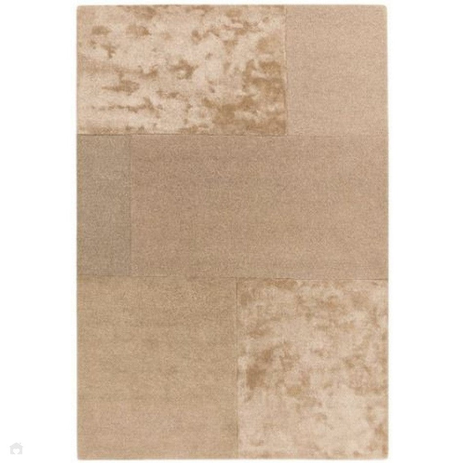 The Tate Sand Rug exudes warmth and natural elegance through its beautifully balanced composition of texture and tone. Expertly handmade in India from a premium 60% wool and 40% viscose blend, this rug features a 10 mm high-density pile with precision hand-carved detailing that accentuates its geometric layout. The design combines soft matte wool sections with lustrous viscose panels, creating a modern patchwork that shifts subtly under changing light.
