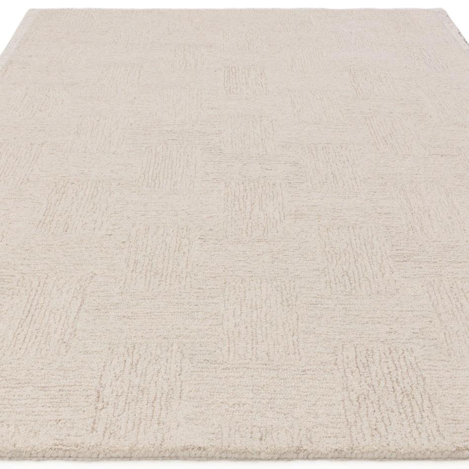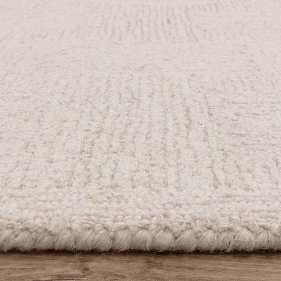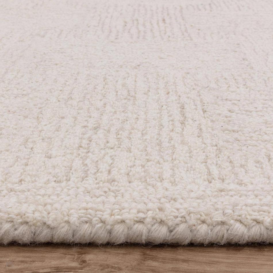 The Theodore Hatch White/Sand Wool Rug combines hand-tufted craftsmanship with a subtle cross-hatch pattern and a textured 10mm loop pile, offering timeless appeal with modern simplicity. Made from 100% wool, it delivers natural softness, durability, and tactile comfort underfoot. The tonal layering of White, Sand Beige, and Cream creates a soothing and balanced finish, ideal for living rooms, bedrooms, and light, neutral interiors. This elegant design introduces quiet sophistication while celebrating natural texture and craftsmanship.