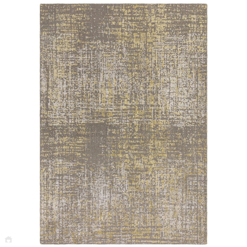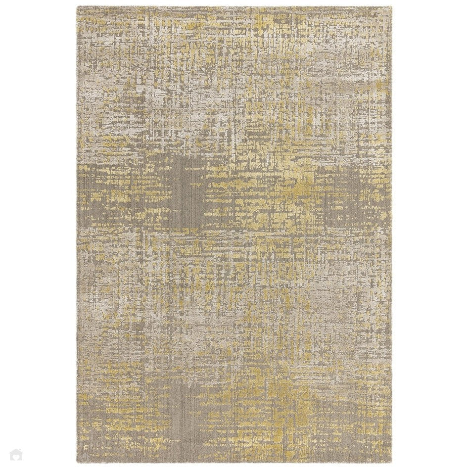The Torino Gold/Yellow/Beige Rug blends gold, mustard yellow, beige, and taupe grey in a stunning abstract distressed design with a subtle shimmer. The hi-low wool and viscose texture adds depth and dimension, while the warm tonal palette creates a welcoming and luxurious feel, making it a perfect centrepiece for modern interiors.