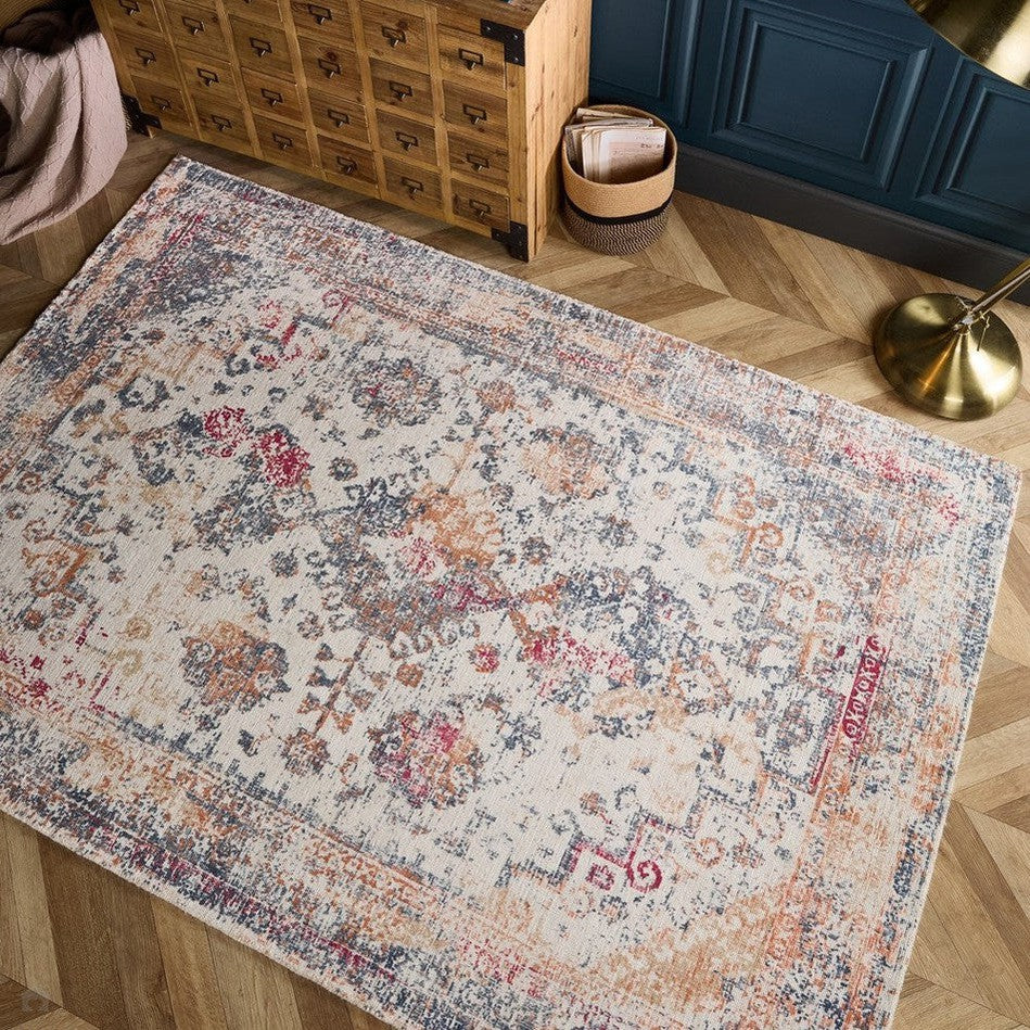 Vogue Traditional Distressed Rug in Navy, Rust, Beige & Multicolour. Bring a rich, heritage-inspired feel to your space with the Vogue Traditional Distressed Rug, a masterful blend of classic Persian design and modern distressed styling. Its heavily faded medallion pattern and timeworn effect create an authentic vintage look, perfect for adding character and warmth to your home. Crafted from soft yet hard-wearing recycled PET fibres, the Vogue rug is both eco-friendly and practical, offering a luxurious feel underfoot while being durable and easy to clean.