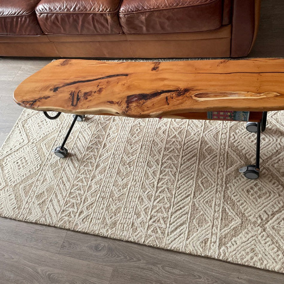 - Warm Beige – Dominant background colour, creating a neutral and earthy foundation that enhances the rug’s natural aesthetic.