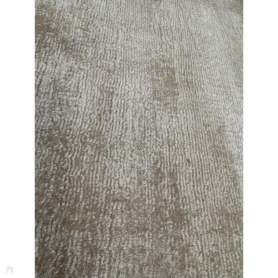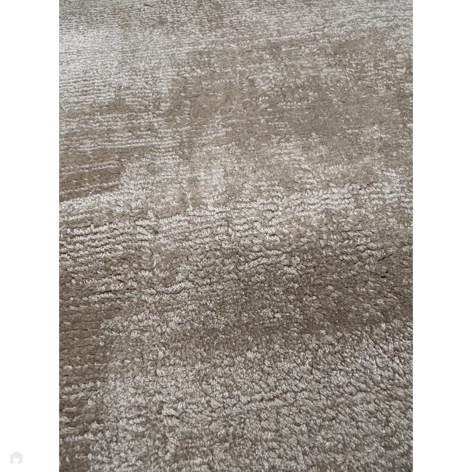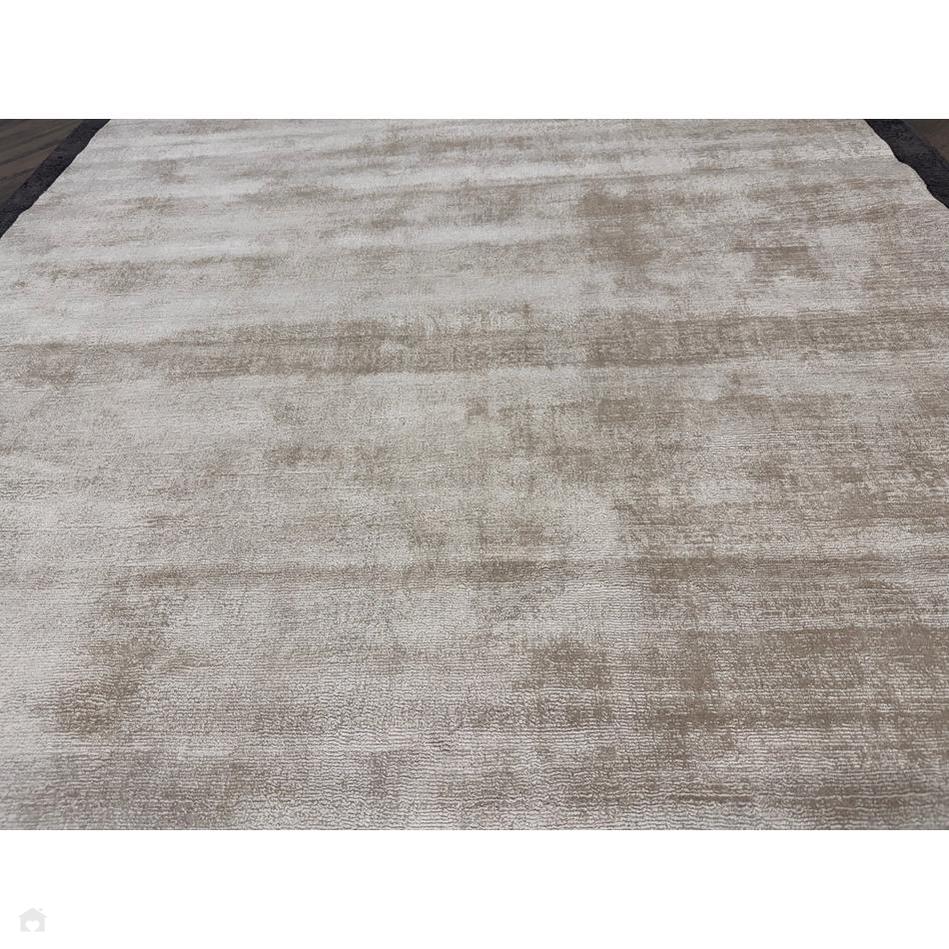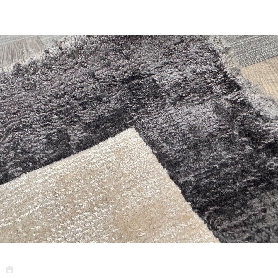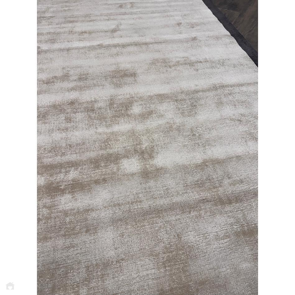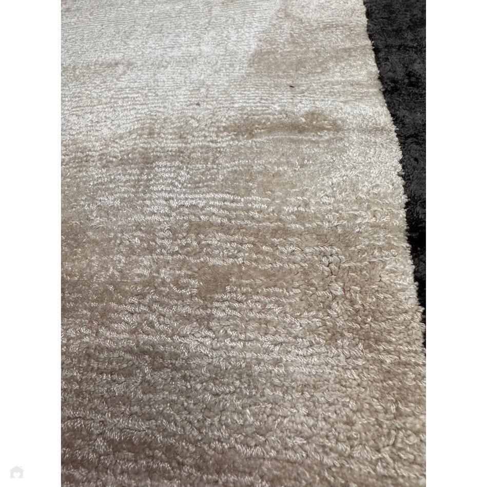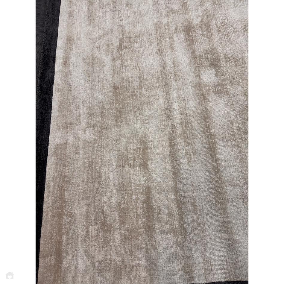 The Blade Slim Border Putty/Charcoal Border Rug layers Putty Beige, Stone Beige, Ivory, and Taupe within a shimmering centre, framed by bold Charcoal Grey and Shadowed Mocha. Crafted from 100% viscose with a tip-sheared finish and a 7mm flatweave pile, it offers a sleek profile with a silky-soft touch. The light-responsive sheen creates dynamic tonal shifts, making this rug a statement of refined elegance suitable for both modern and classic décor.