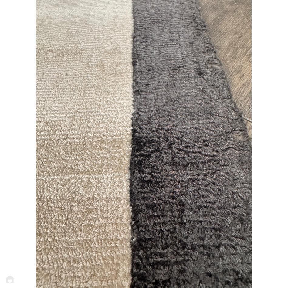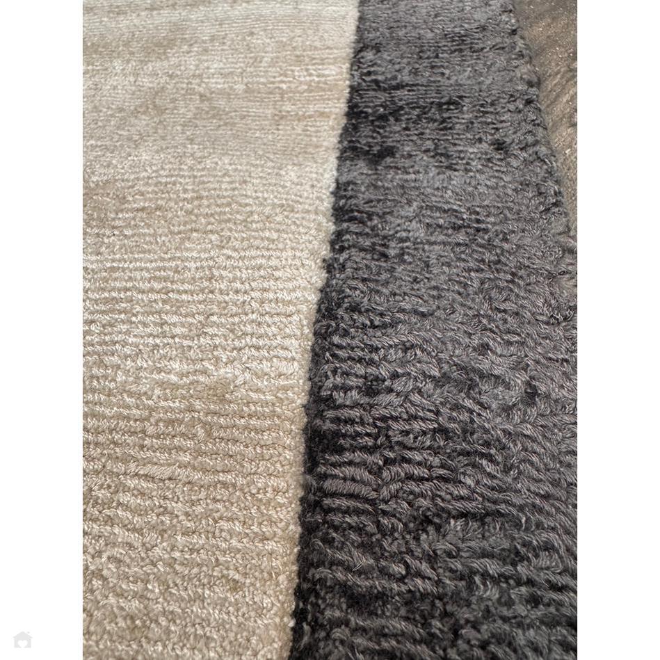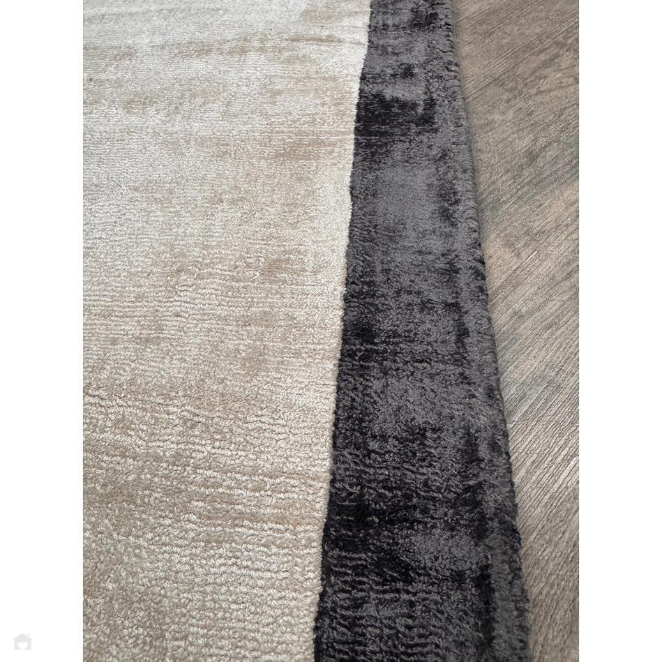The Blade Slim Border Putty/Charcoal Border Rug brings understated sophistication and contemporary definition to modern interiors. Hand-woven from 100% viscose, it features a tip-sheared finish that creates a subtly distressed, high-shine surface. The lustrous viscose pile reflects light beautifully, producing soft tonal shifts across the pale putty centre, while the charcoal border adds bold framing and balance. Its silky-smooth handle and 7mm flatweave pile deliver a clean, modern profile that works effortlessly in living rooms, bedrooms, and elegant lounge spaces.