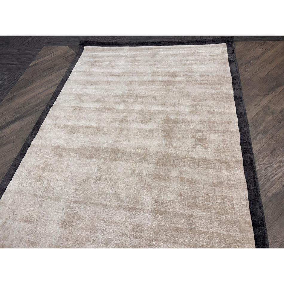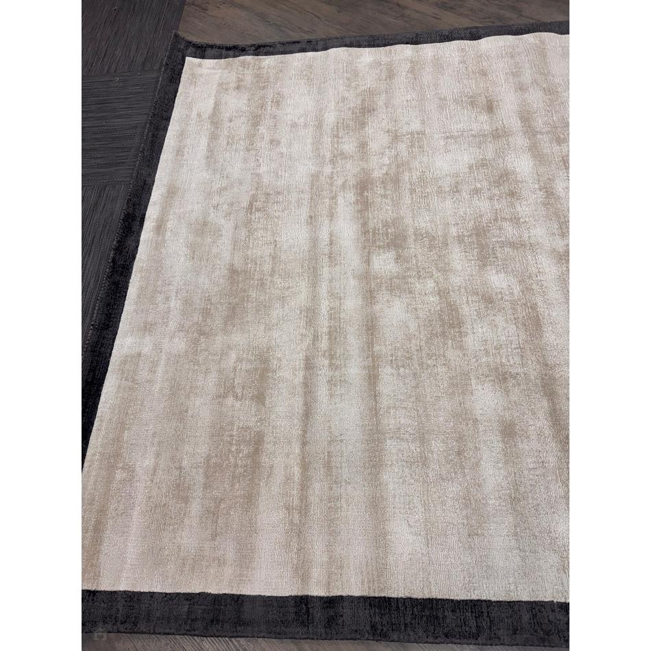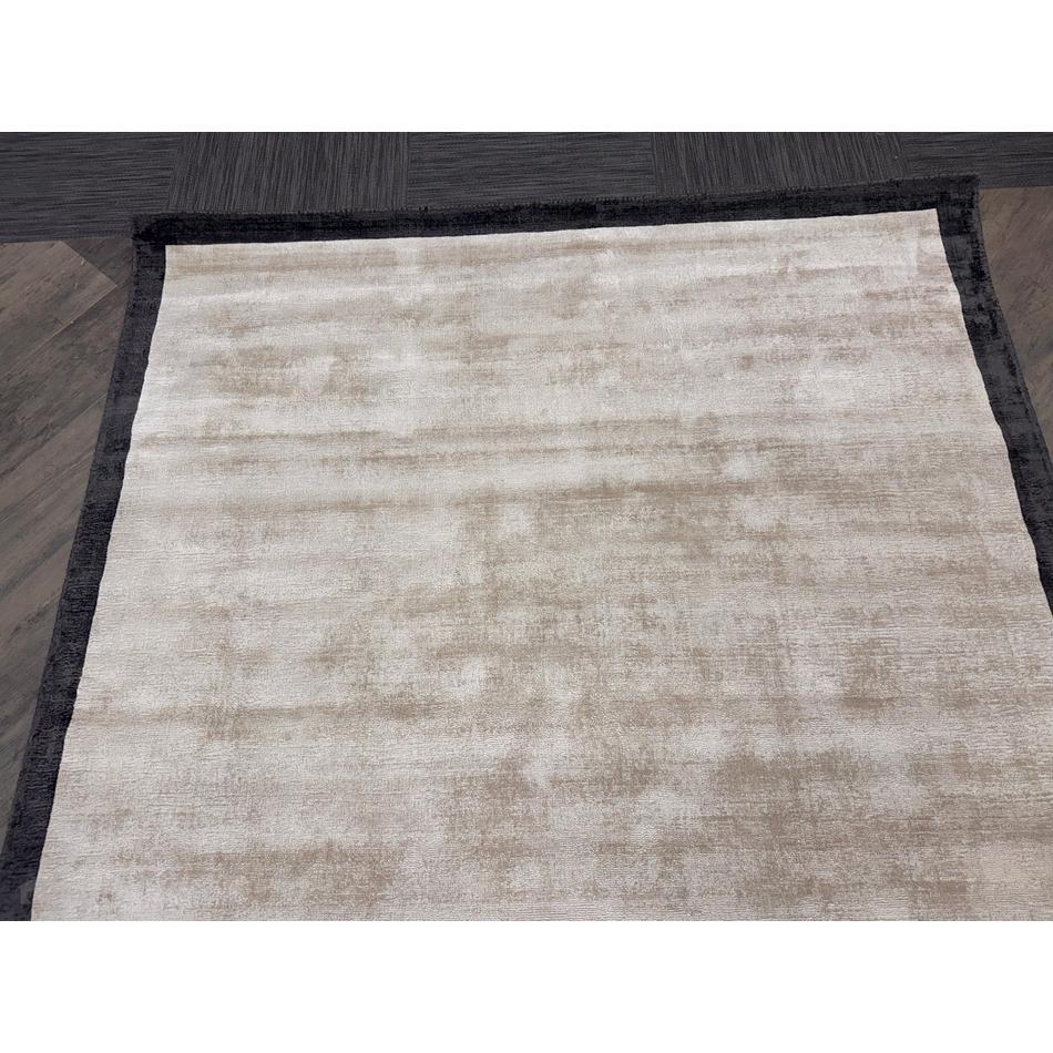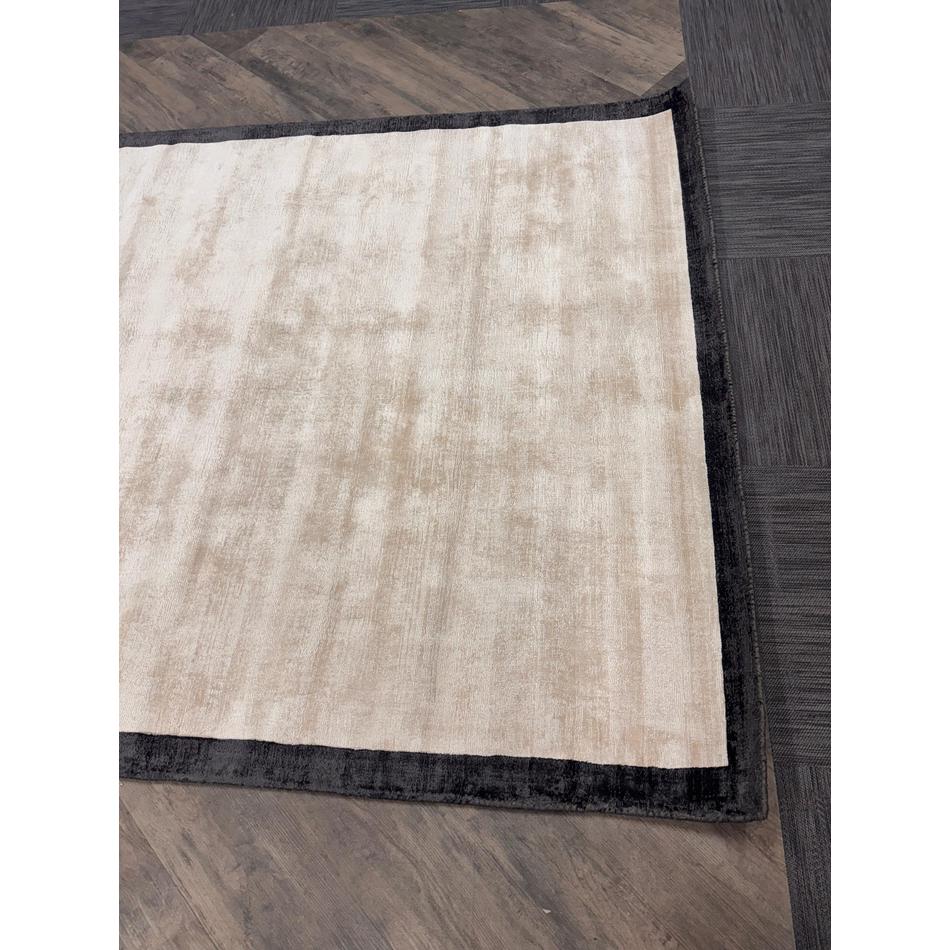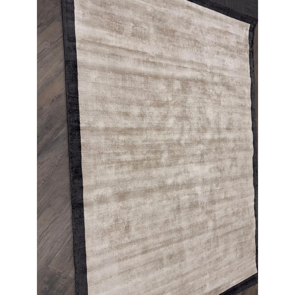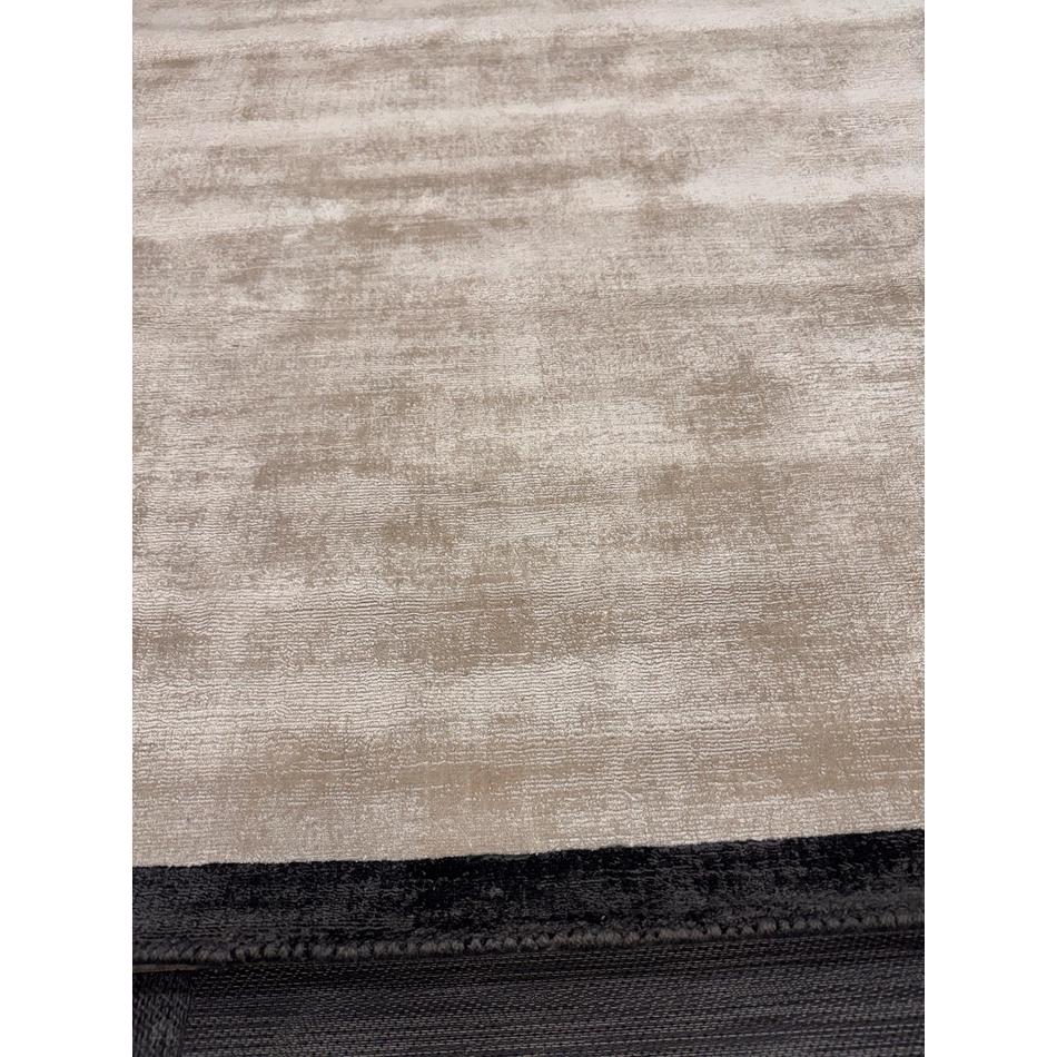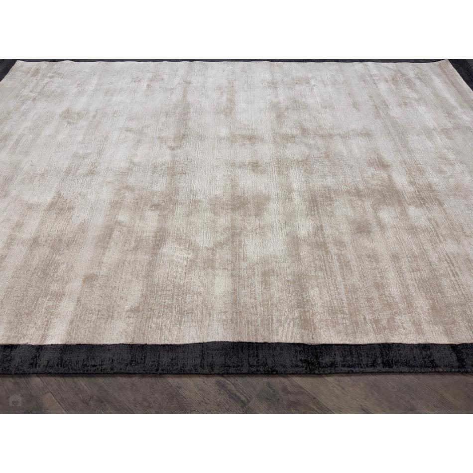 The Blade Slim Border Putty/Silver Rug brings understated luxury and a refined framed look to modern interiors. Hand-woven from 100% viscose, it features a tip-sheared finish for a subtly distressed, high-shine surface. The lustrous viscose pile reflects light to create soft tonal shifts across the putty centre, while the sleek silver border adds definition and balance. Its silky-smooth handle and 7mm flatweave pile deliver a clean, contemporary profile that sits beautifully in living rooms, bedrooms, and elegant workspaces.