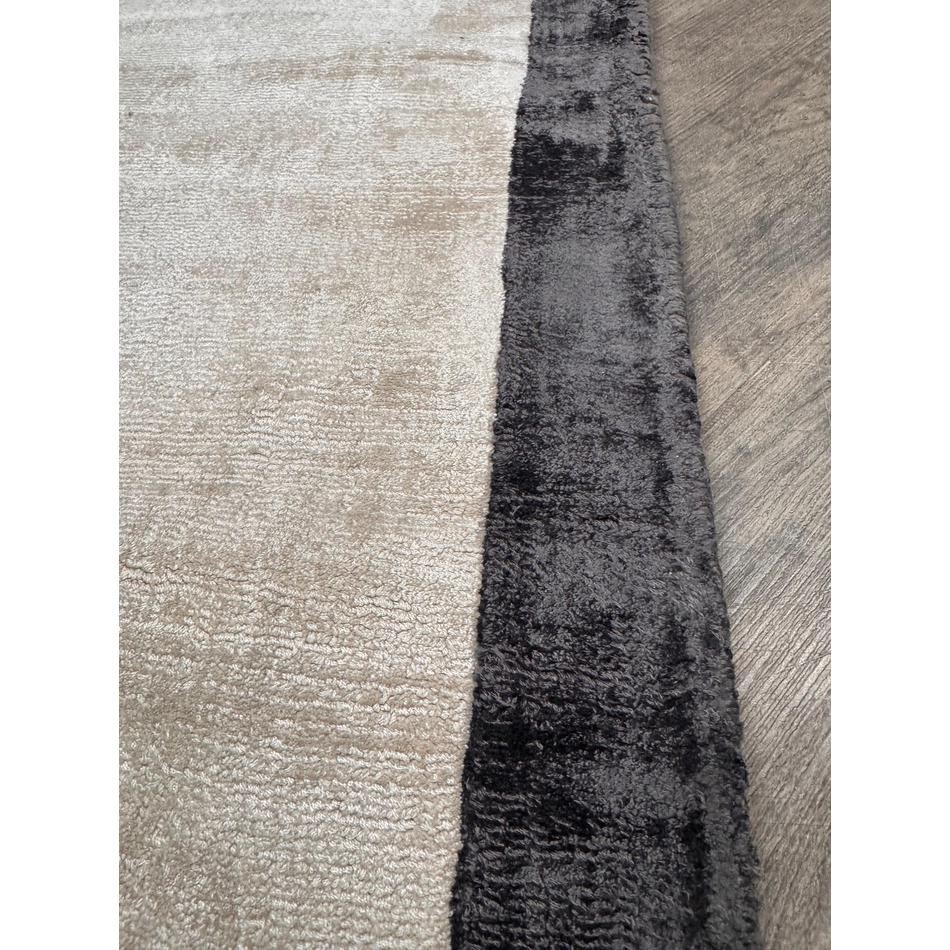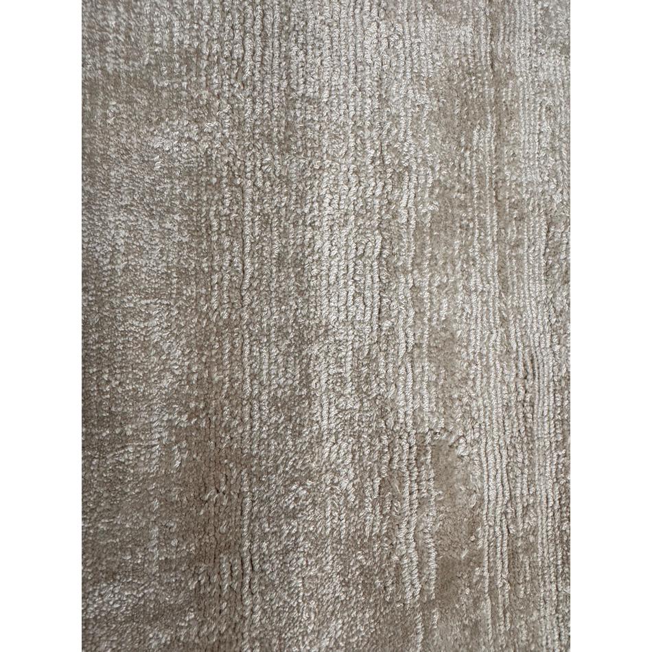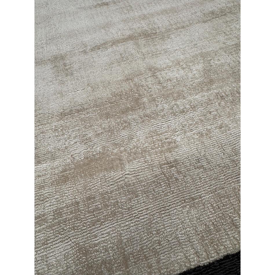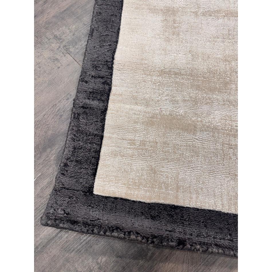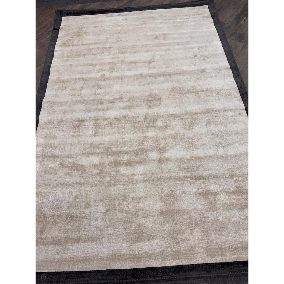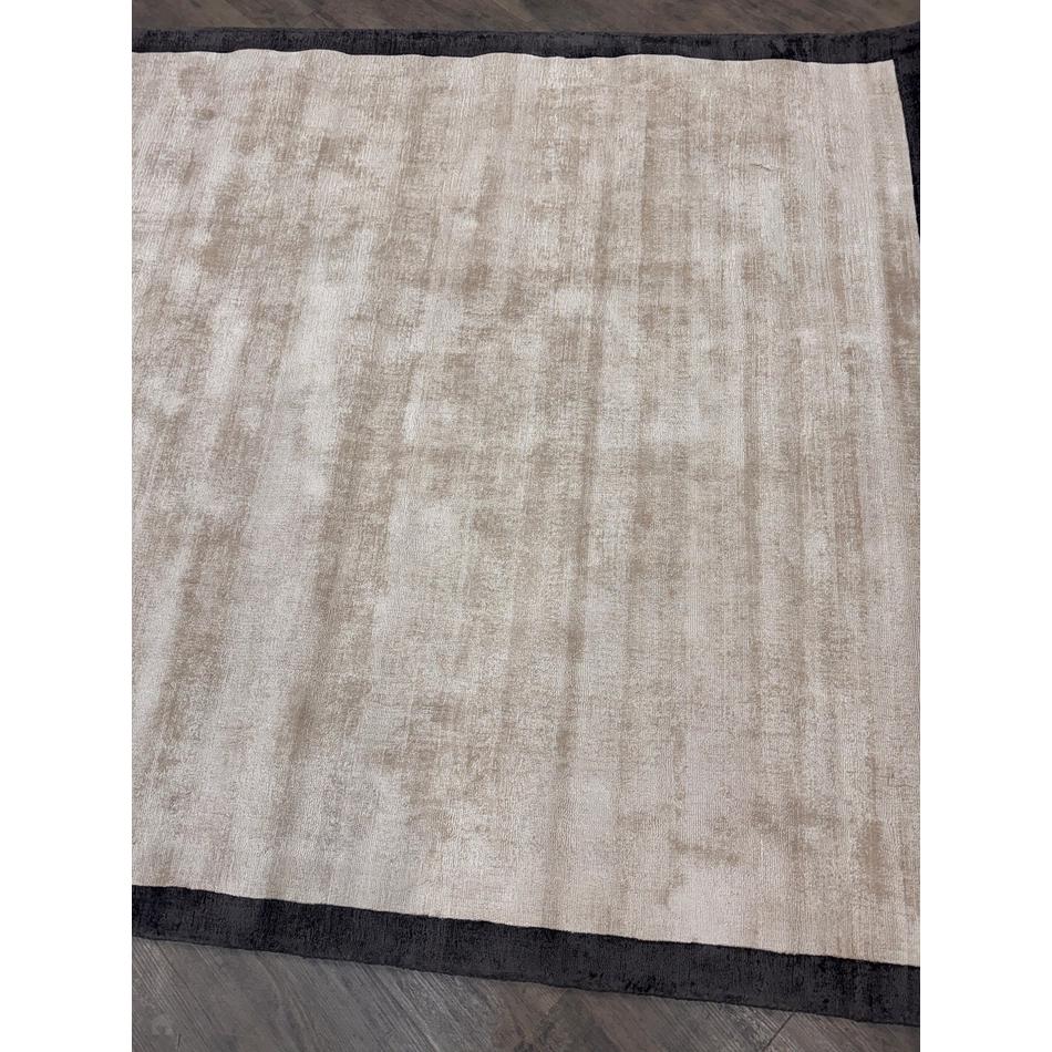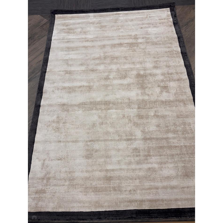 The Blade Slim Border Putty/Silver Rug brings understated luxury and a refined framed look to modern interiors. Hand-woven from 100% viscose, it features a tip-sheared finish for a subtly distressed, high-shine surface. The lustrous viscose pile reflects light to create soft tonal shifts across the putty centre, while the sleek silver border adds definition and balance. Its silky-smooth handle and 7mm flatweave pile deliver a clean, contemporary profile that sits beautifully in living rooms, bedrooms, and elegant workspaces.