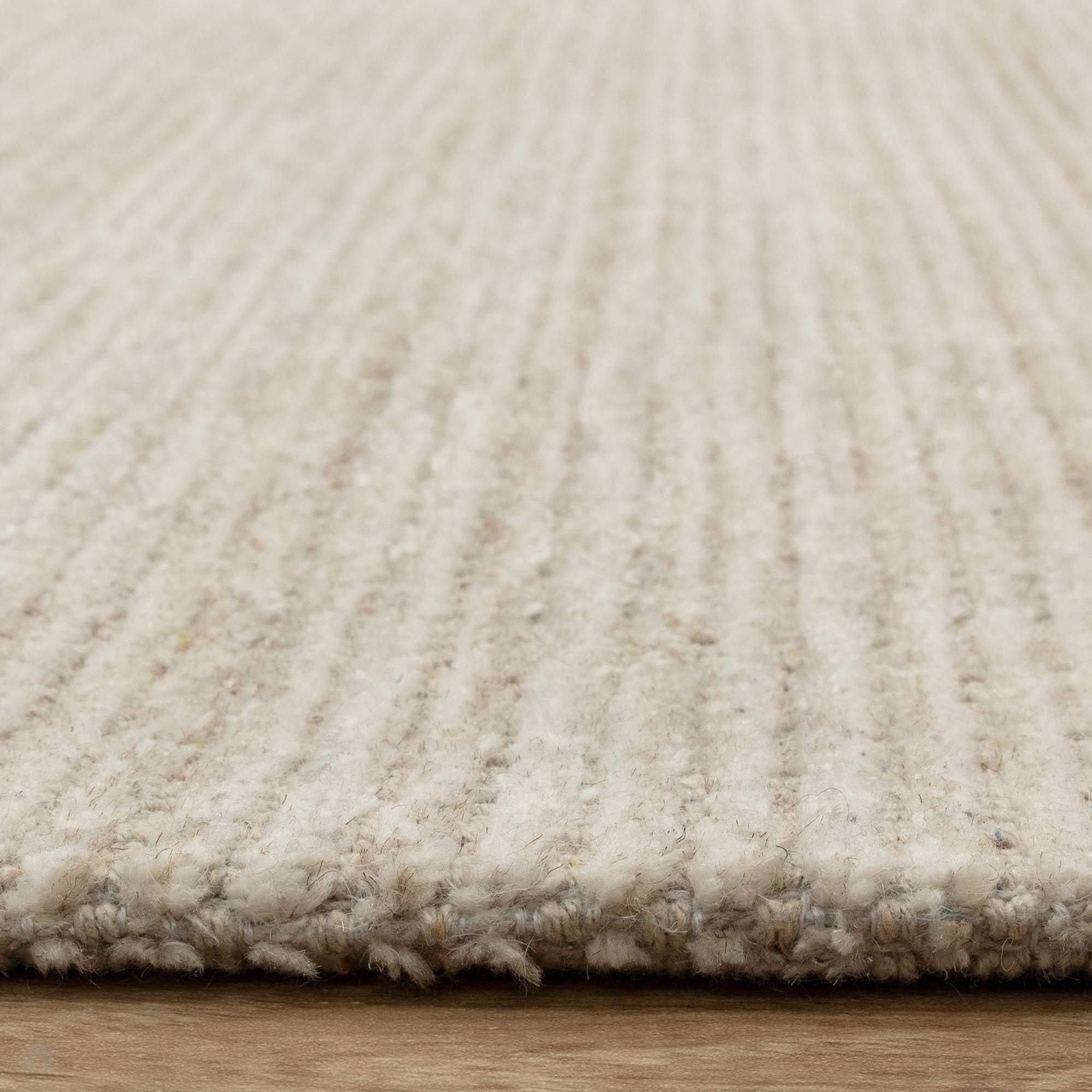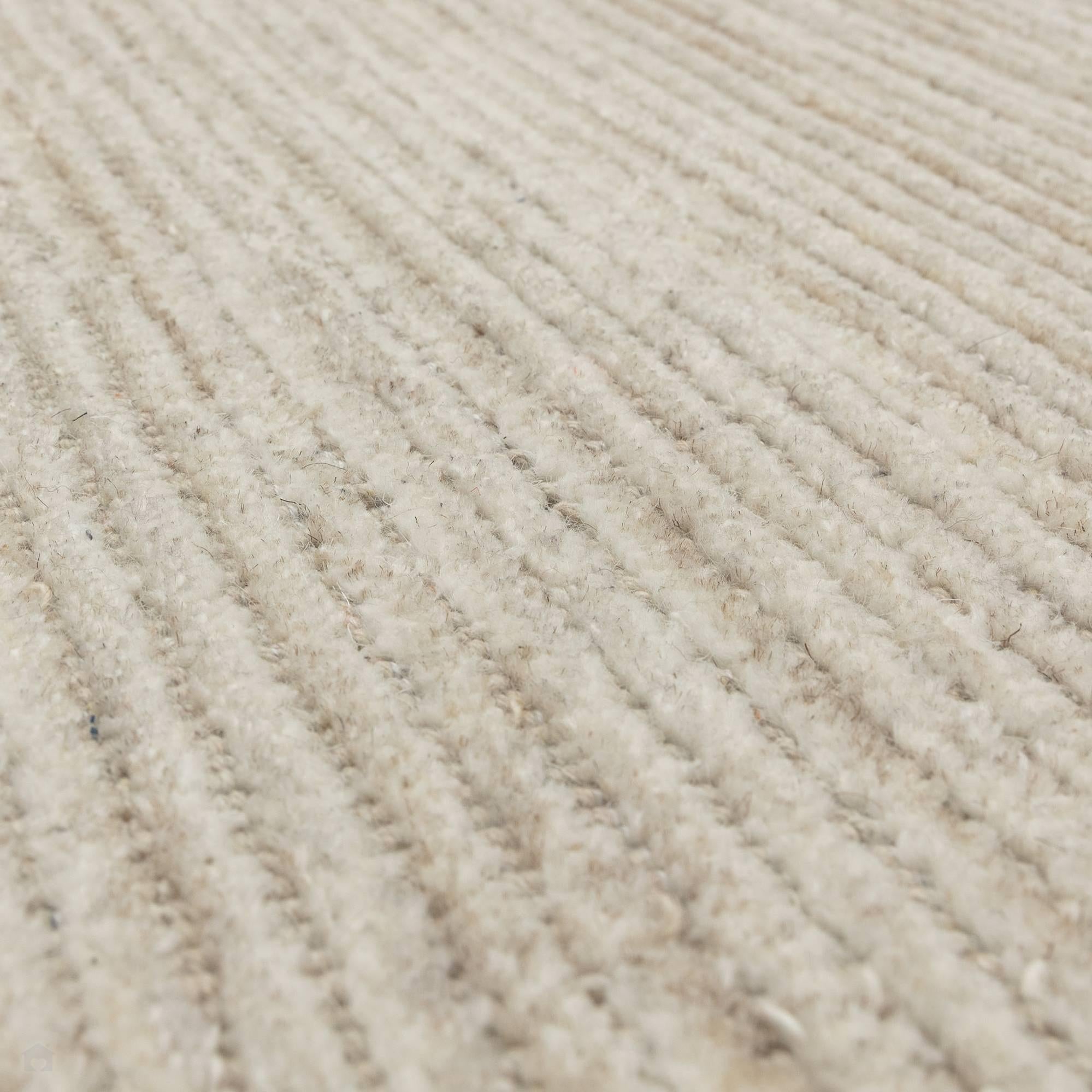 Hand-woven in India from a premium blend of 45% polyester, 40% wool, and 15% cotton, the Hazy Putty Rug embodies understated sophistication through its gently textured surface and calming neutral tones. The alternating loop and cut pile construction forms a subtle ribbed pattern, while tip-shearing lends a softly distressed finish with delicate tonal movement. With its flatweave-style low pile measuring 4mm and a cotton backing for added durability, this rug offers both refined texture and everyday practicality — perfect for modern, minimalist, or Scandinavian-inspired spaces.