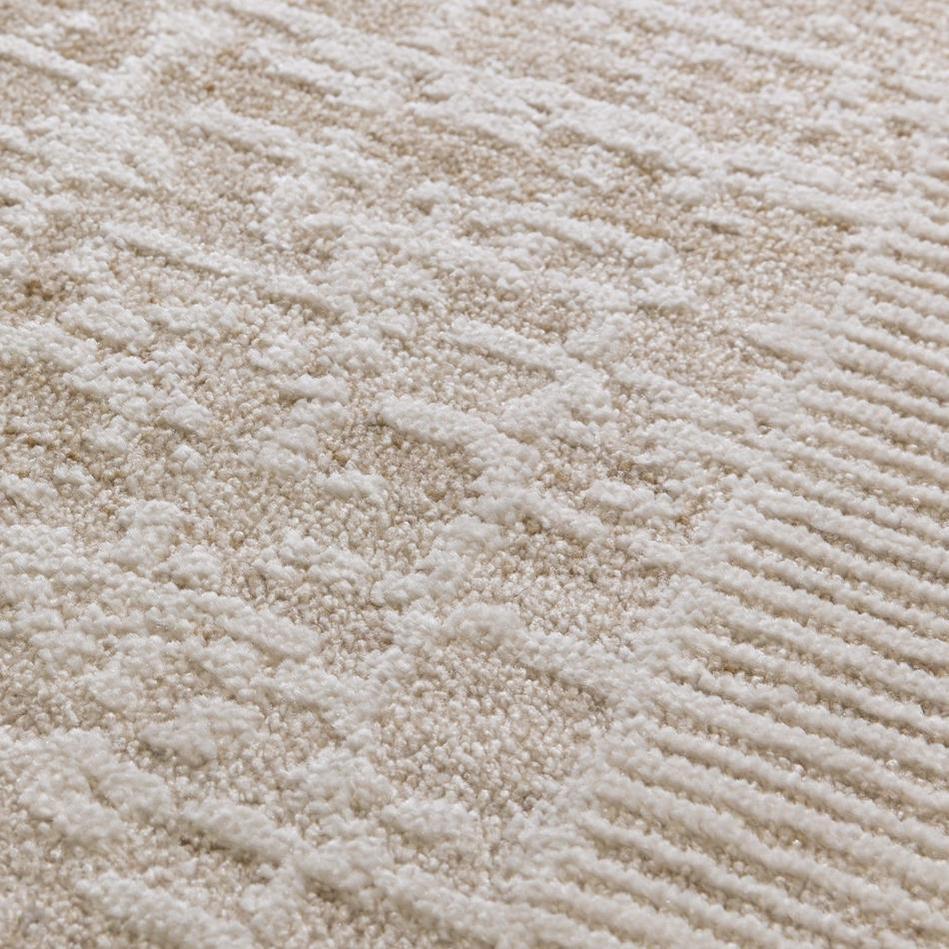 The Anders AN10 Beige, Ivory & Stone Rug offers a beautifully composed blend of Natural Beige, Warm Ivory, Pale Stone, Frosted Cream, Light Taupe, and Chalk White tones. Its structured geometric centre and ribbed border lend architectural balance, while the low 7 mm textured pile and soft shimmer introduce refined depth. This design’s neutral palette and contemporary pattern make it a versatile choice for modern, Scandi, and transitional interiors, bringing quiet sophistication and subtle warmth to any living space.