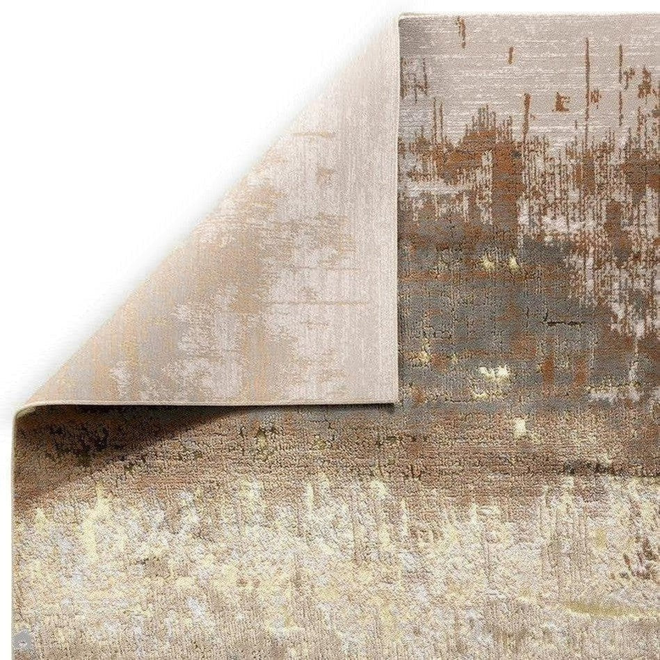 The Aurora AU01 Dune Runner introduces a rich and inviting presence with its abstract distressed marbled design enhanced by a subtle metallic shimmer. The interplay of Bronze, Gold, Rust/Terracotta, Beige, Grey, and Cream tones creates a warm, sophisticated effect that feels both artistic and contemporary. Its smooth, low-profile cut pile adds comfort and practicality, making this rug a perfect choice for living rooms, dining areas, and bedrooms seeking elegance with a modern edge.