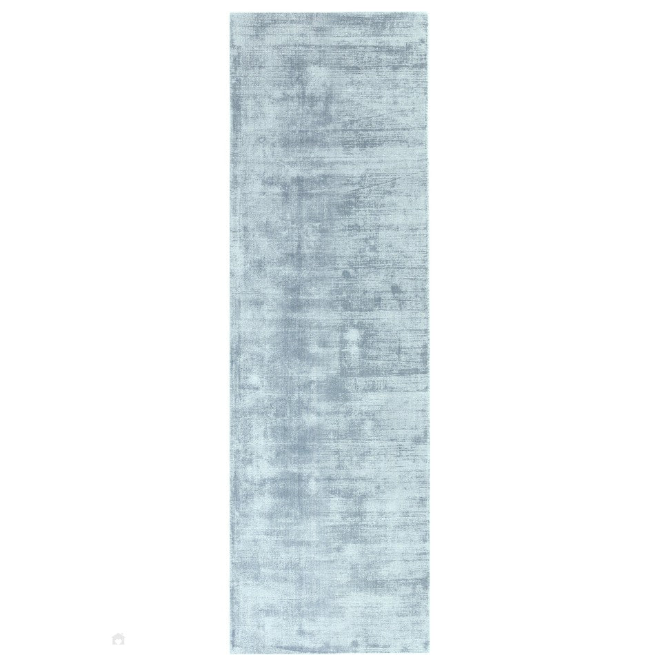 The Blade Airforce Blue Runner offers a serene yet sophisticated addition to any interior. Hand-woven from 100% viscose, it is finished with a tip-sheared surface that creates a lightly distressed, high-shine appearance. The lustrous viscose fibres catch and reflect light, producing subtle shifts in tone that give the rug a sense of depth, elegance, and movement. Its cool, airy blue palette balances softness with a refined modern character, making it ideal for creating a tranquil focal point in living rooms, bedrooms, or open-plan spaces. The silky-smooth texture underfoot enhances its luxury appeal, while the 7mm flatweave pile delivers a sleek, contemporary profile.